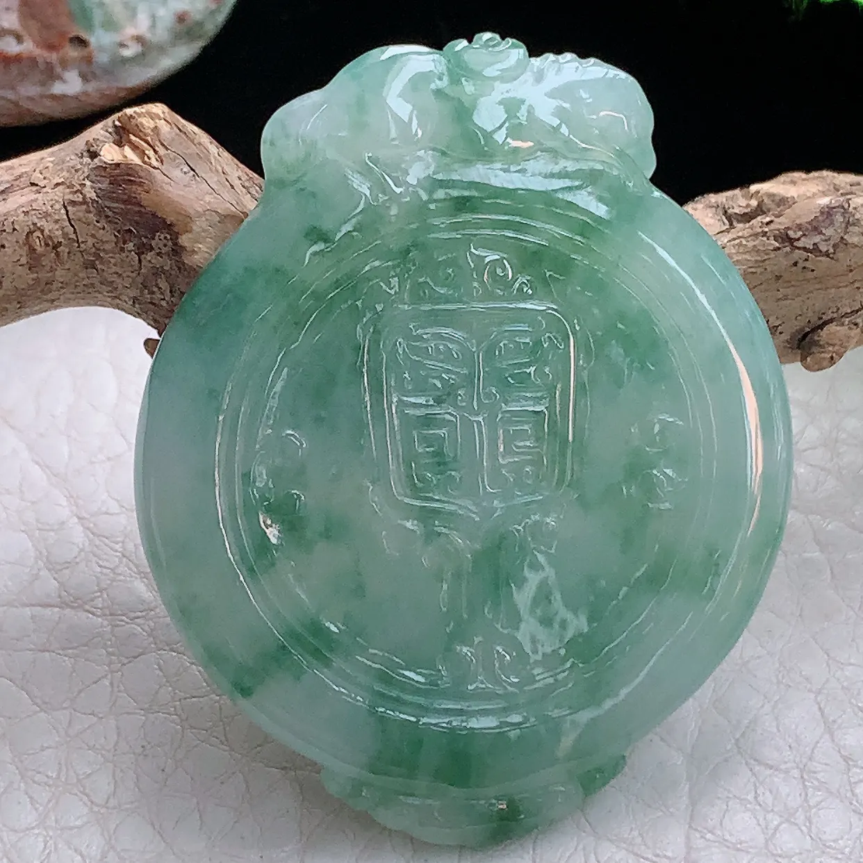 自然光实拍,冰润春带彩翡翠路路通吊坠,寓意好运连连,路路畅通,经典款式,财运滚滚,路路通,佩戴效果更