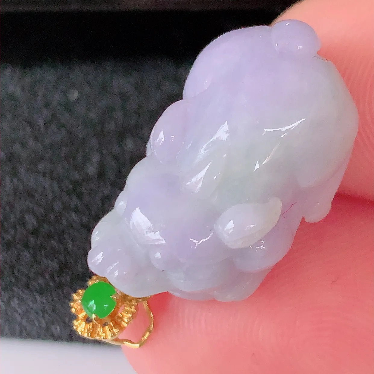 自然光实拍,18K金镶嵌紫罗兰招财貔貅翡翠吊坠 民间有“一摸貔貅运程旺盛 再摸貔貅财运滚滚,三摸貔貅
