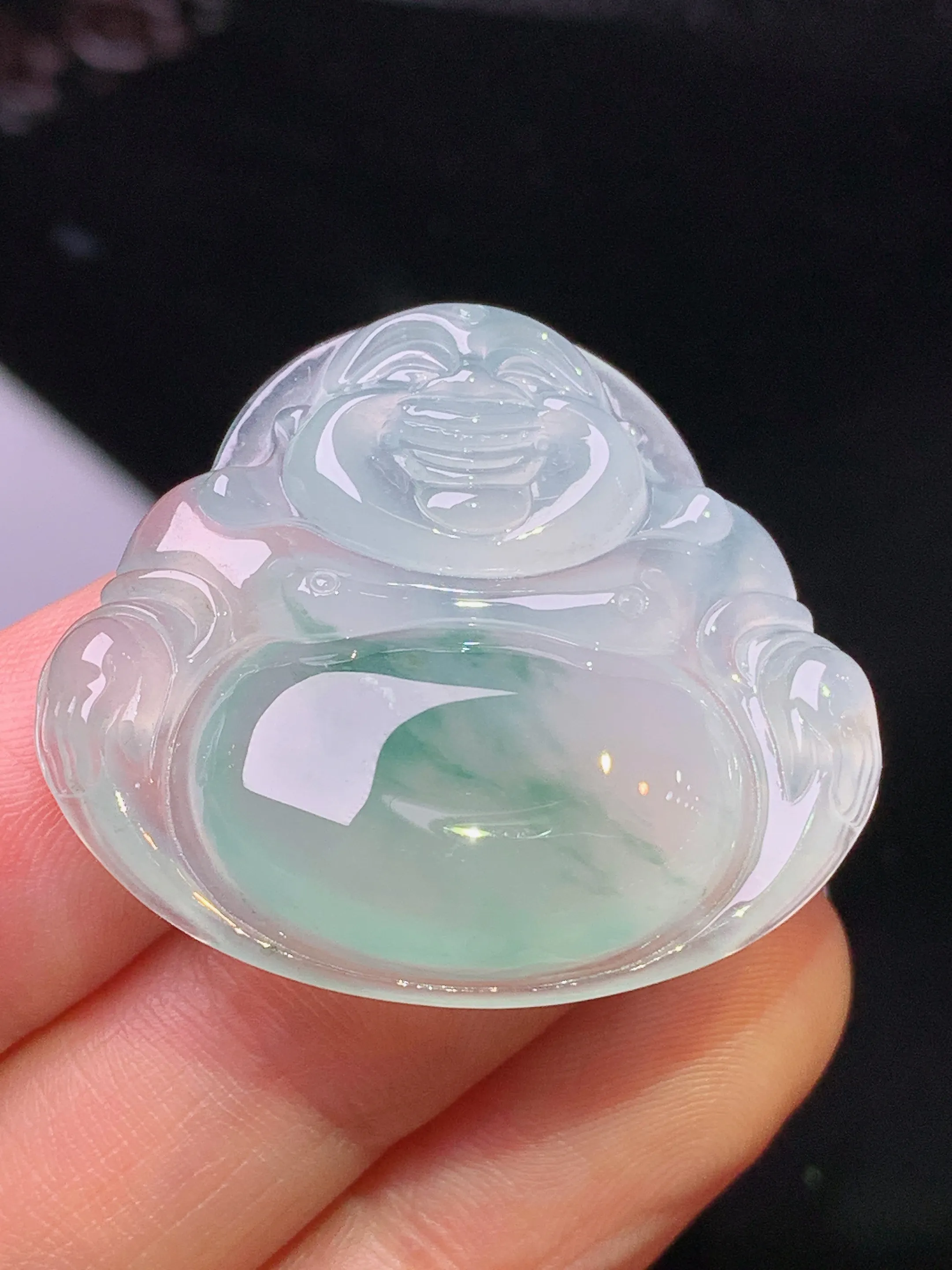 冰种飘绿佛公吊坠 玉质细腻 色泽清新艳丽 整体尺寸30.6*34*6.2