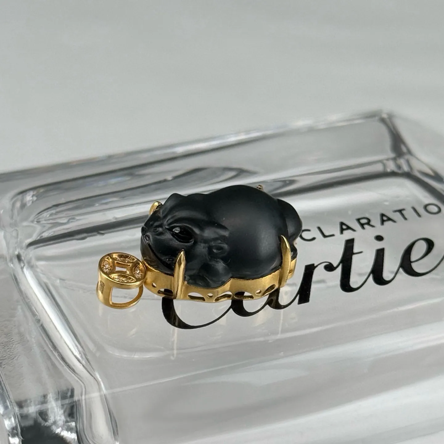 精品18k墨翠貔貅吊坠 种好色正 黑度极好 打灯通透 油性十足 尺寸25.2
