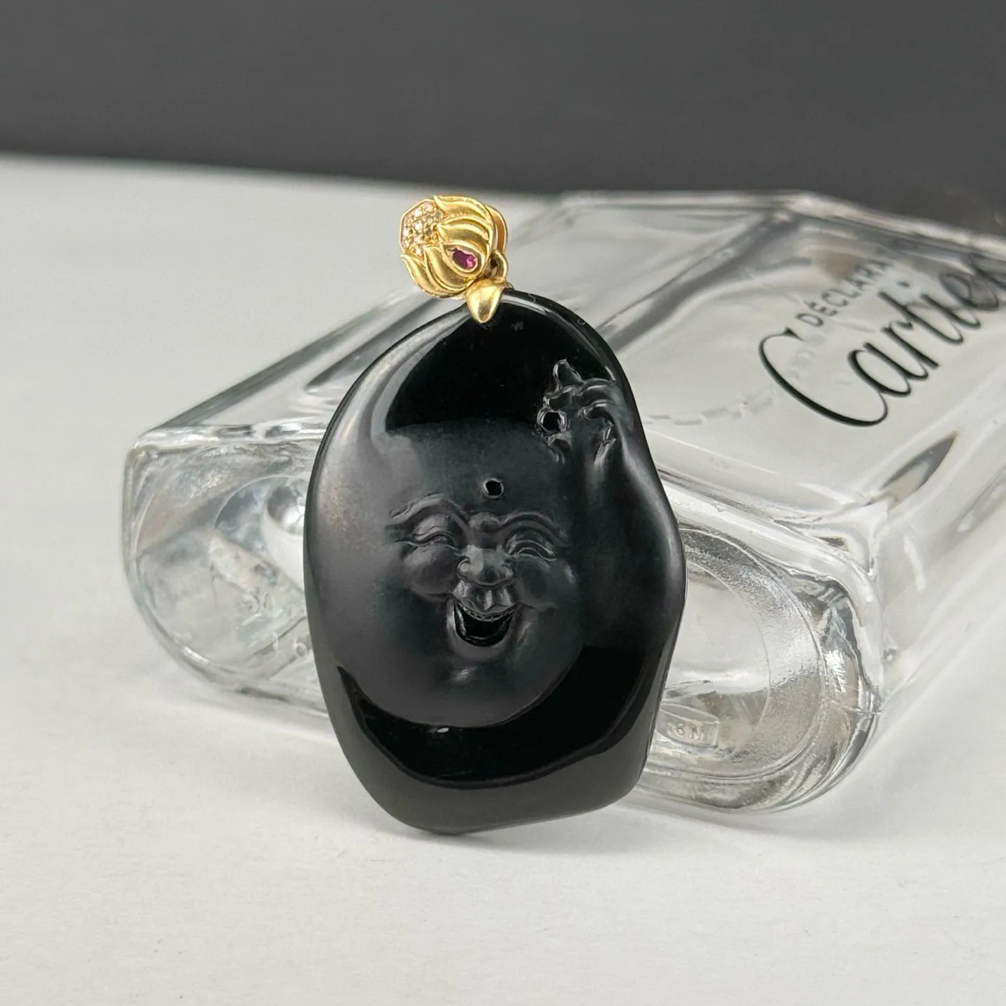 精品18k墨翠笑佛 种好色正 黑度极好 打灯通透 油性十足 尺寸46.3
