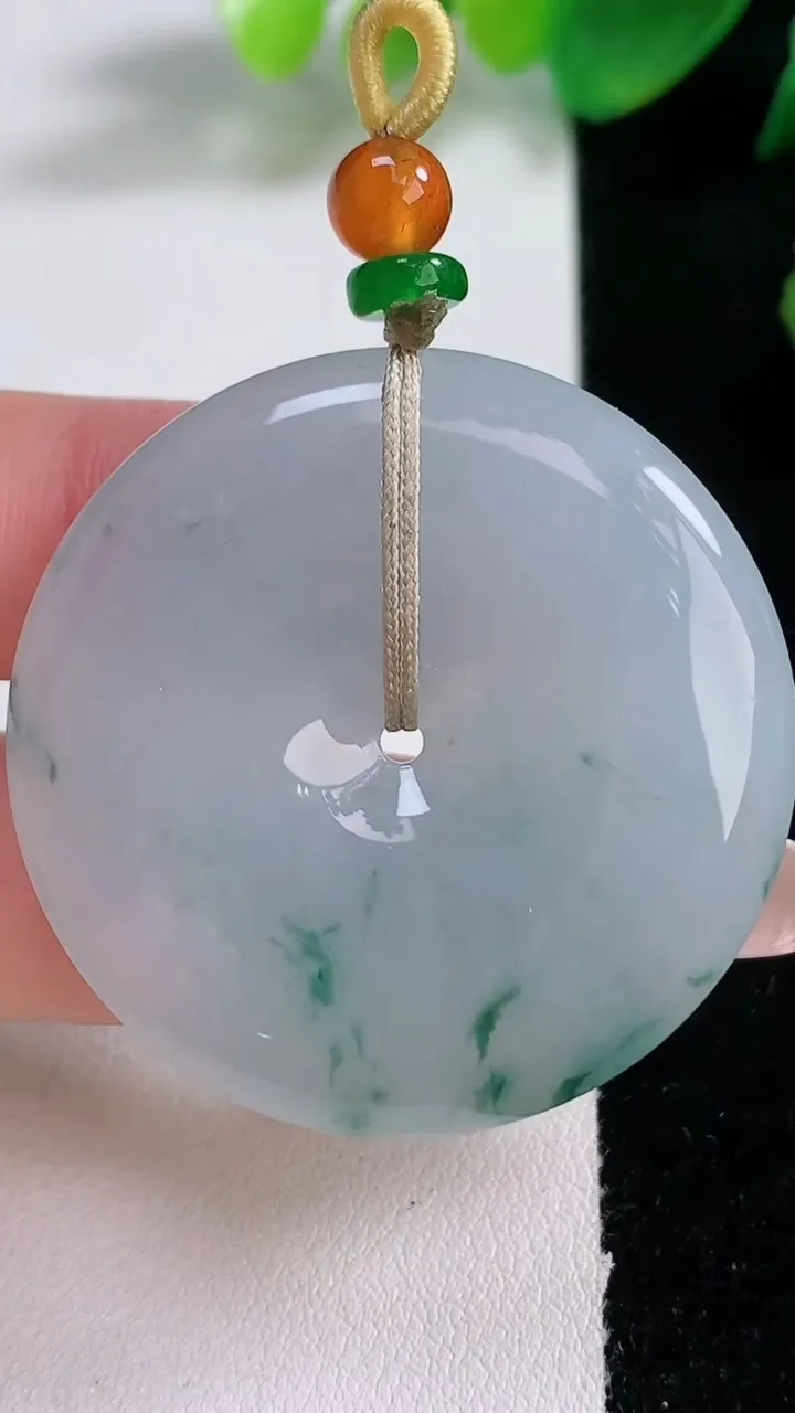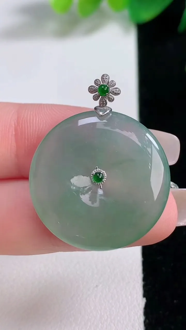 天然A货翡翠冰种飘花平安扣吊坠,尺寸39.6-5.7,重量:20.81g 1月3日