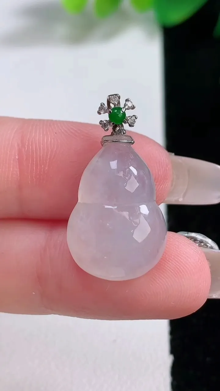 天然A货翡翠种白冰葫芦吊坠,尺寸19.7-14-6,重量:3.45g 1月3日