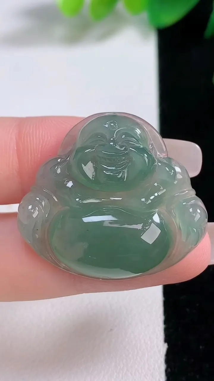 天然A货翡翠佛公吊坠,尺寸28.3-31.8-6.6,重量:8.24g 1月3日