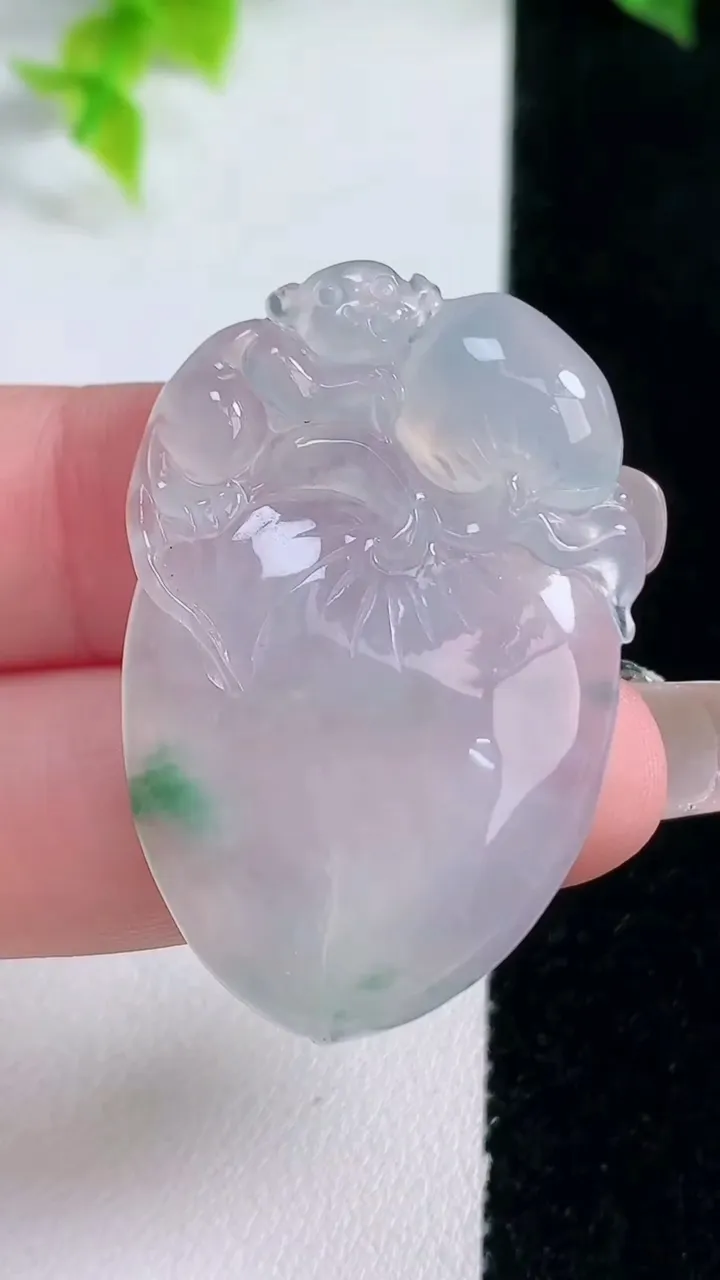 天然A货翡翠冰种飘花寿桃吊坠,尺寸39.8-26-5.7,重量:11.09g 1月15日
