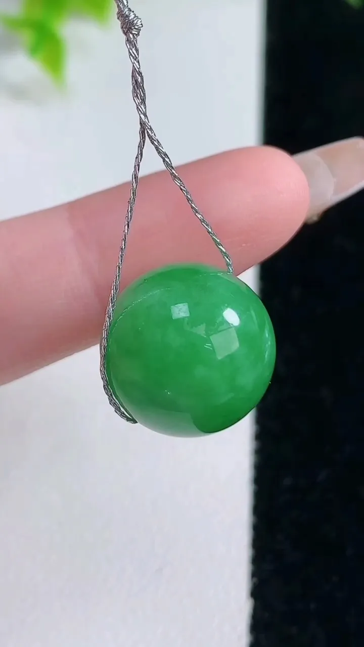 天然A货翡翠圆珠吊坠,尺寸14.8,重量:5.85g 1月15日