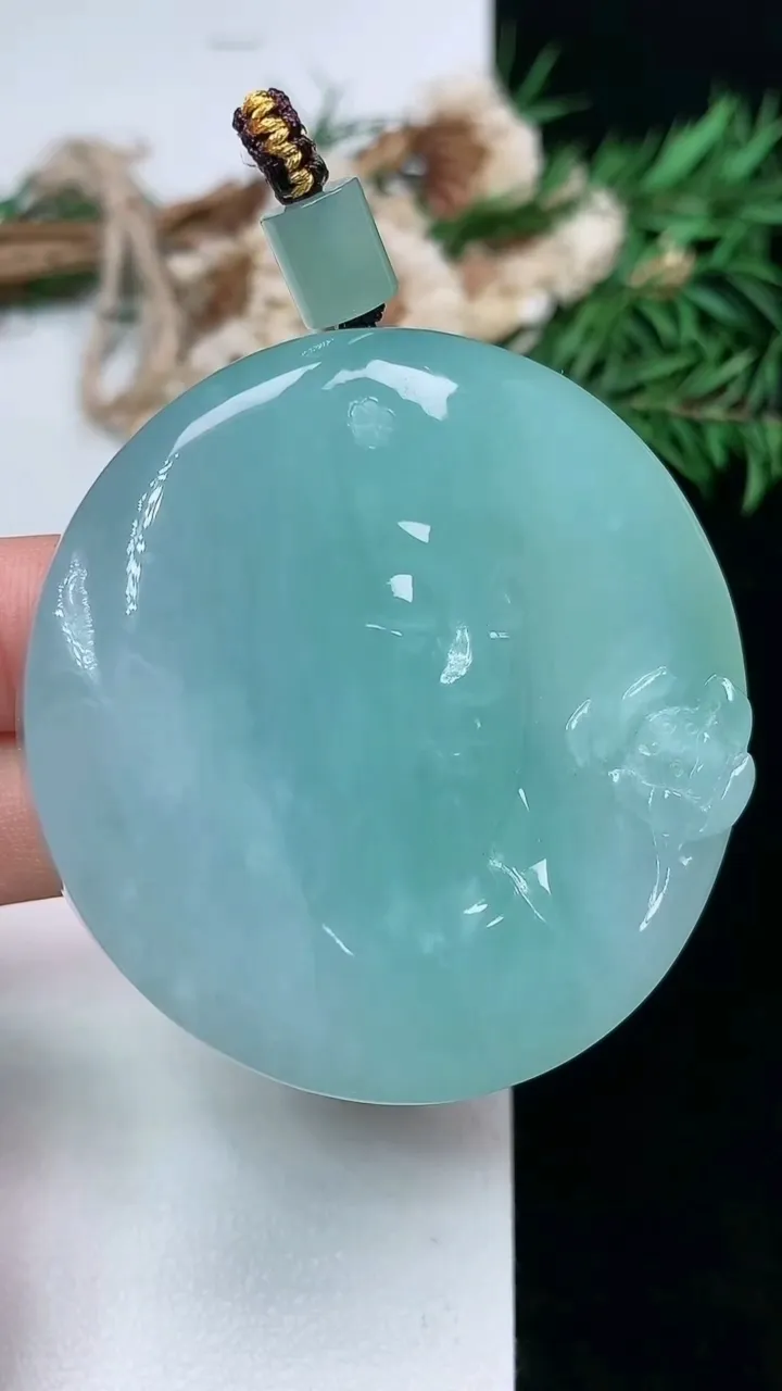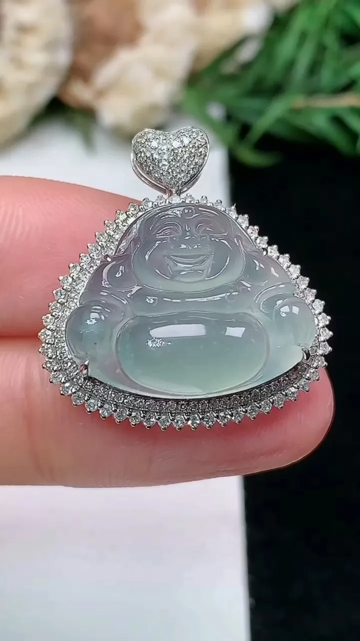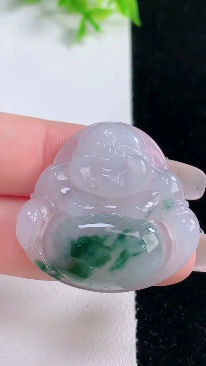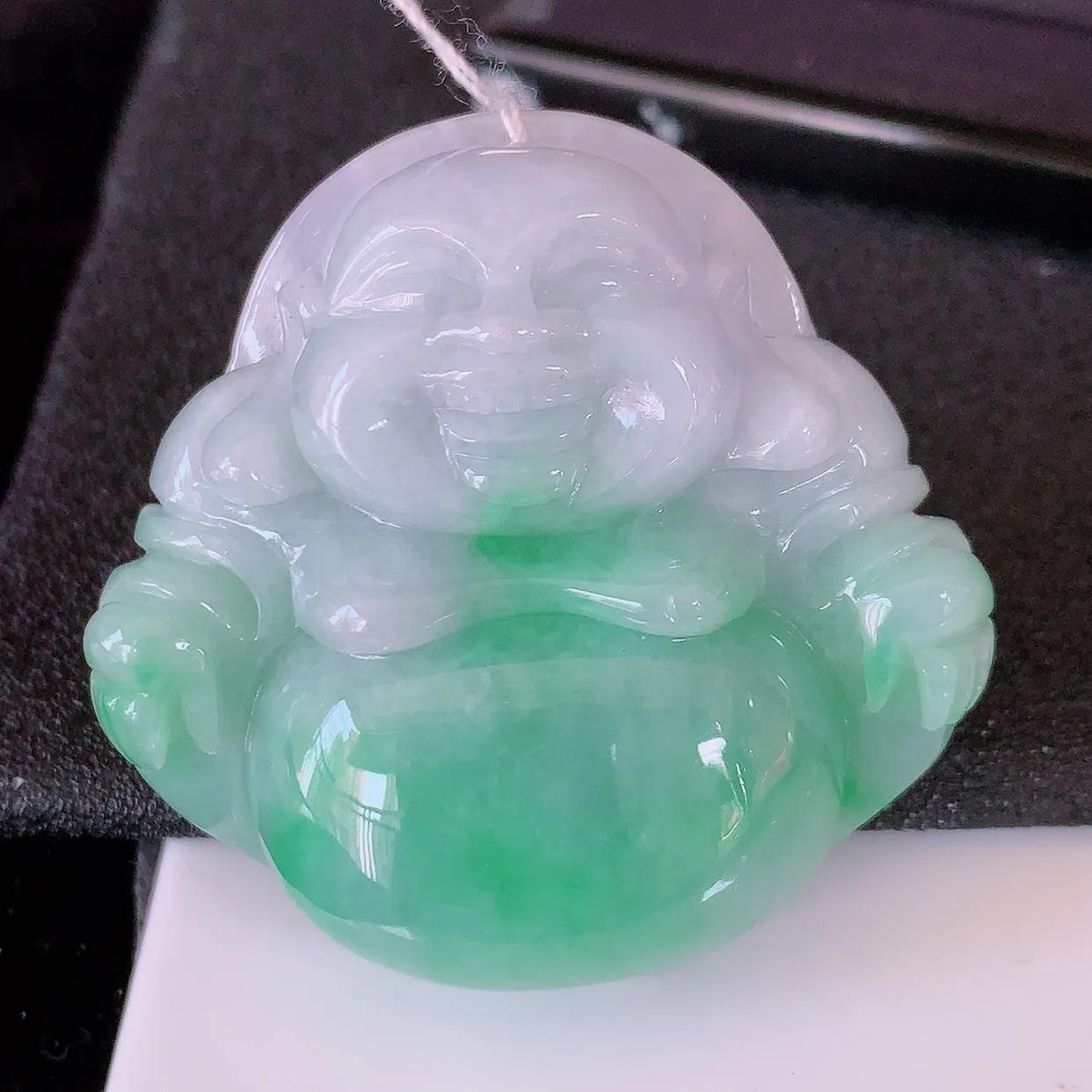 自然光实拍,大件厚装冰润飘绿翡翠佛公吊坠,开心笑佛,种老水足,颜色漂亮,立体饱满圆润,佩戴效果赞#4