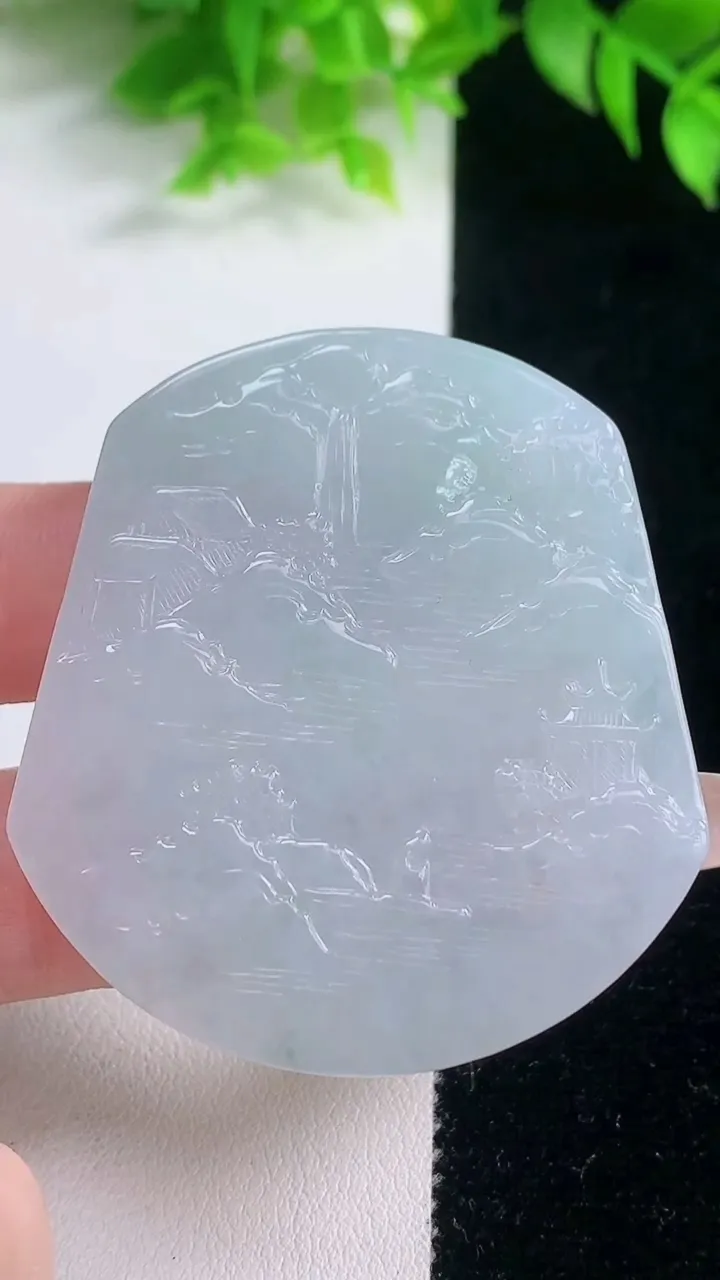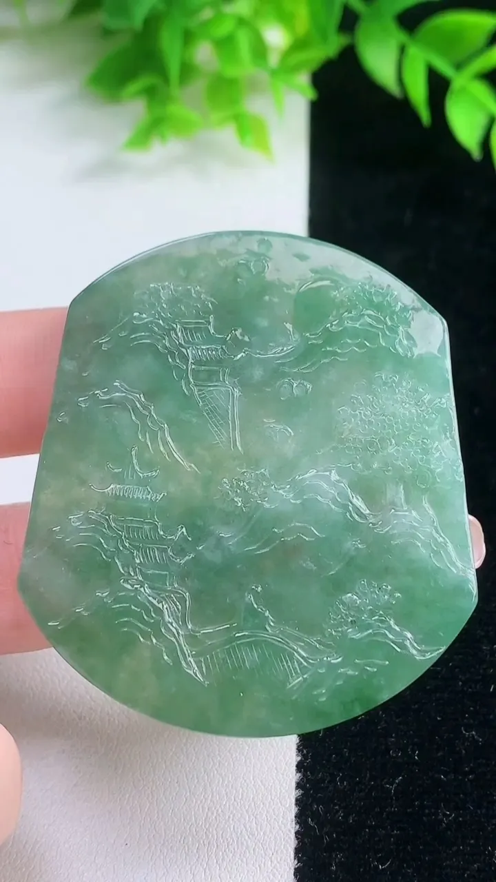 天然A货翡翠山水牌吊坠,尺寸53.8-47.3-4.5,重量:30.30g 1月18日