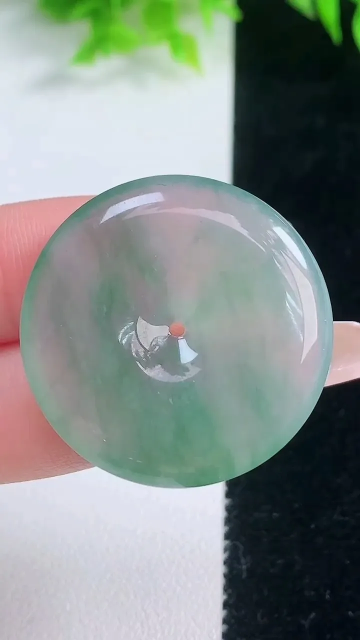 天然A货翡翠种飘花平安扣吊坠,尺寸32.5-5.3,重量:12.18g 1月18日