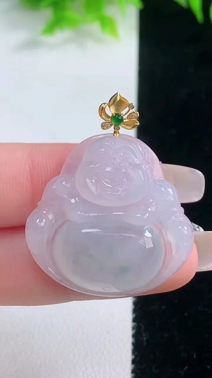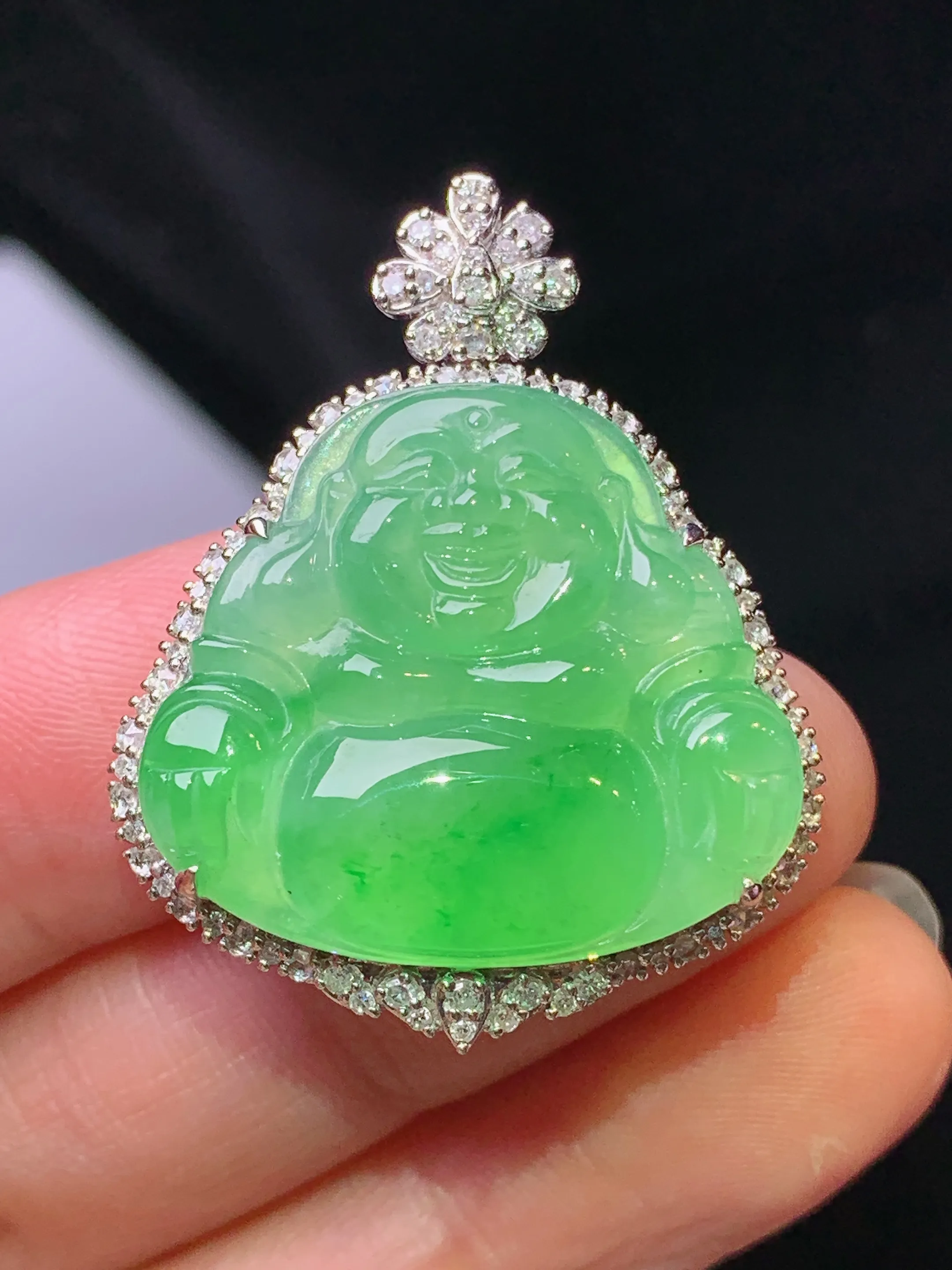 天然A货翡翠种飘花佛公吊坠,尺寸28.8-30-5.7,重量:7.91g 1月18日