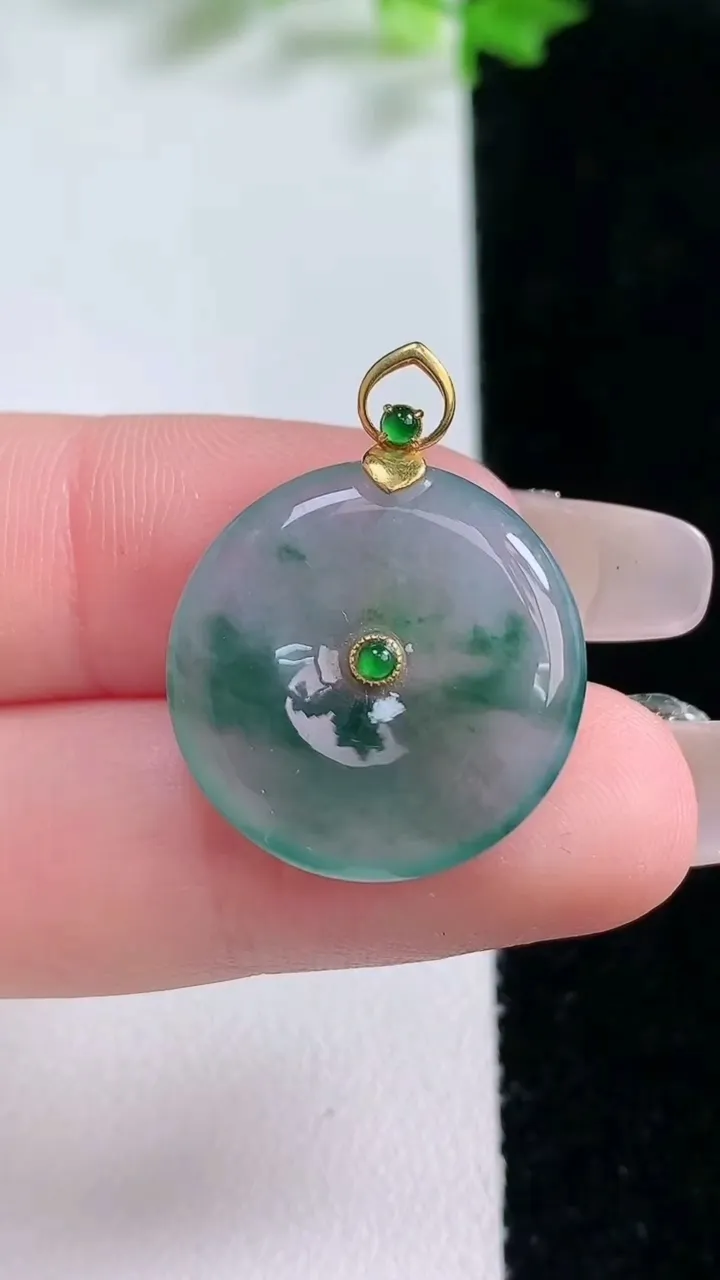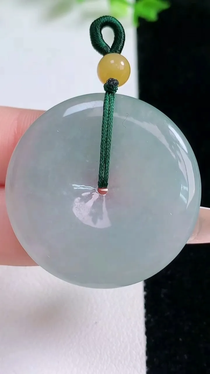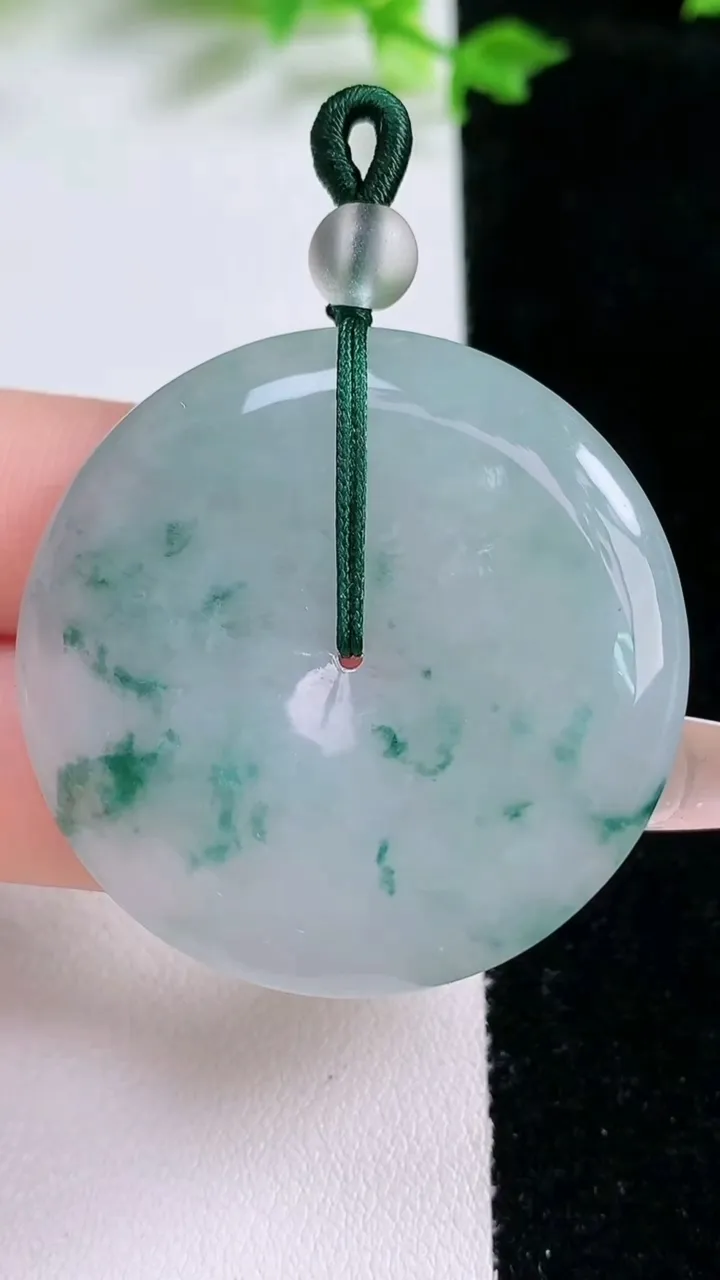 天然A货翡翠冰种飘花平安扣吊坠,尺寸38.7-6,重量:20.45g 1月20日