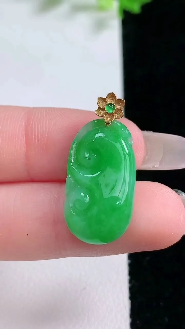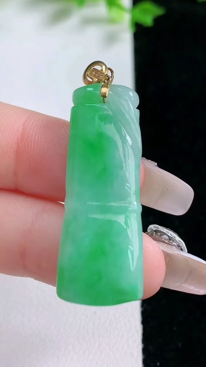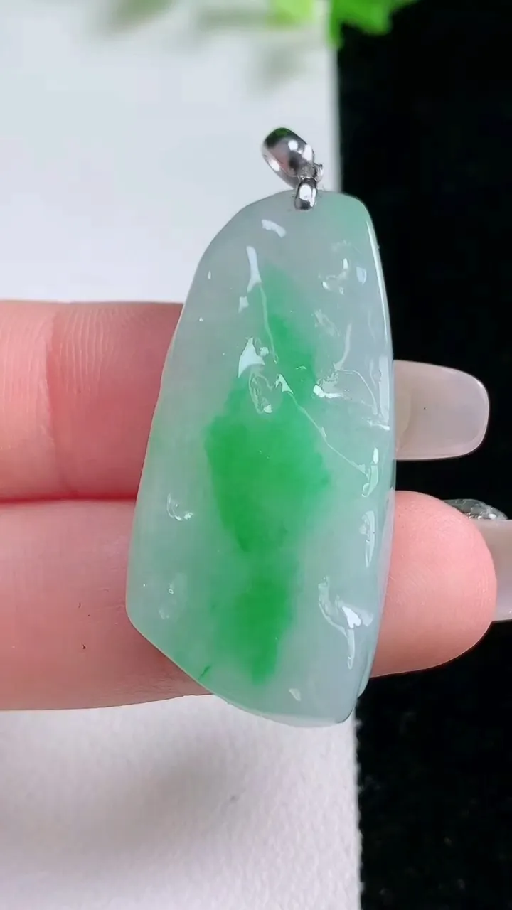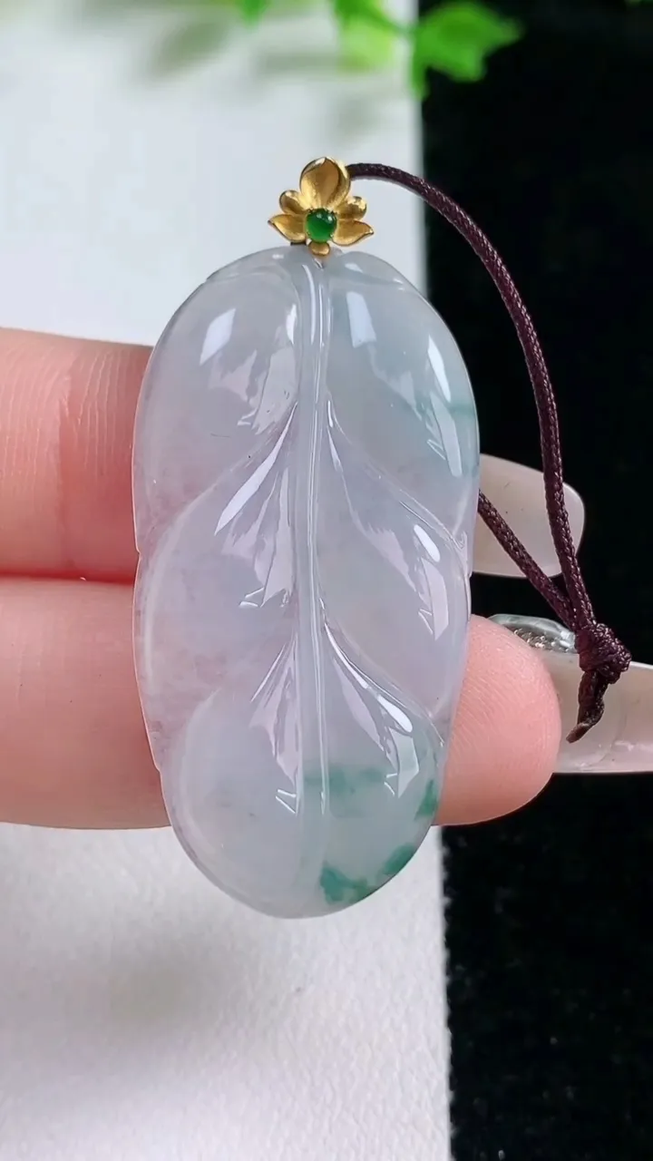 天然A货翡翠种飘花金枝玉叶 叶子吊坠,尺寸39.3-20.8-3.3,重量:5.84g 1月20日