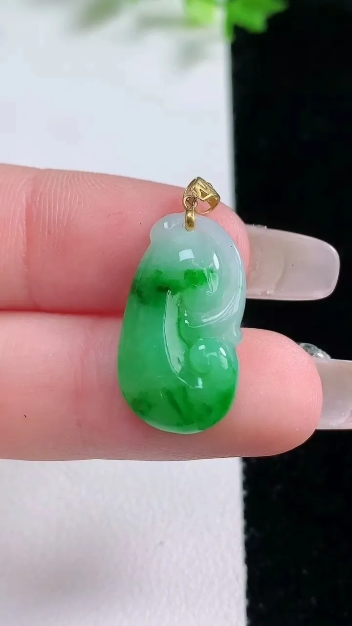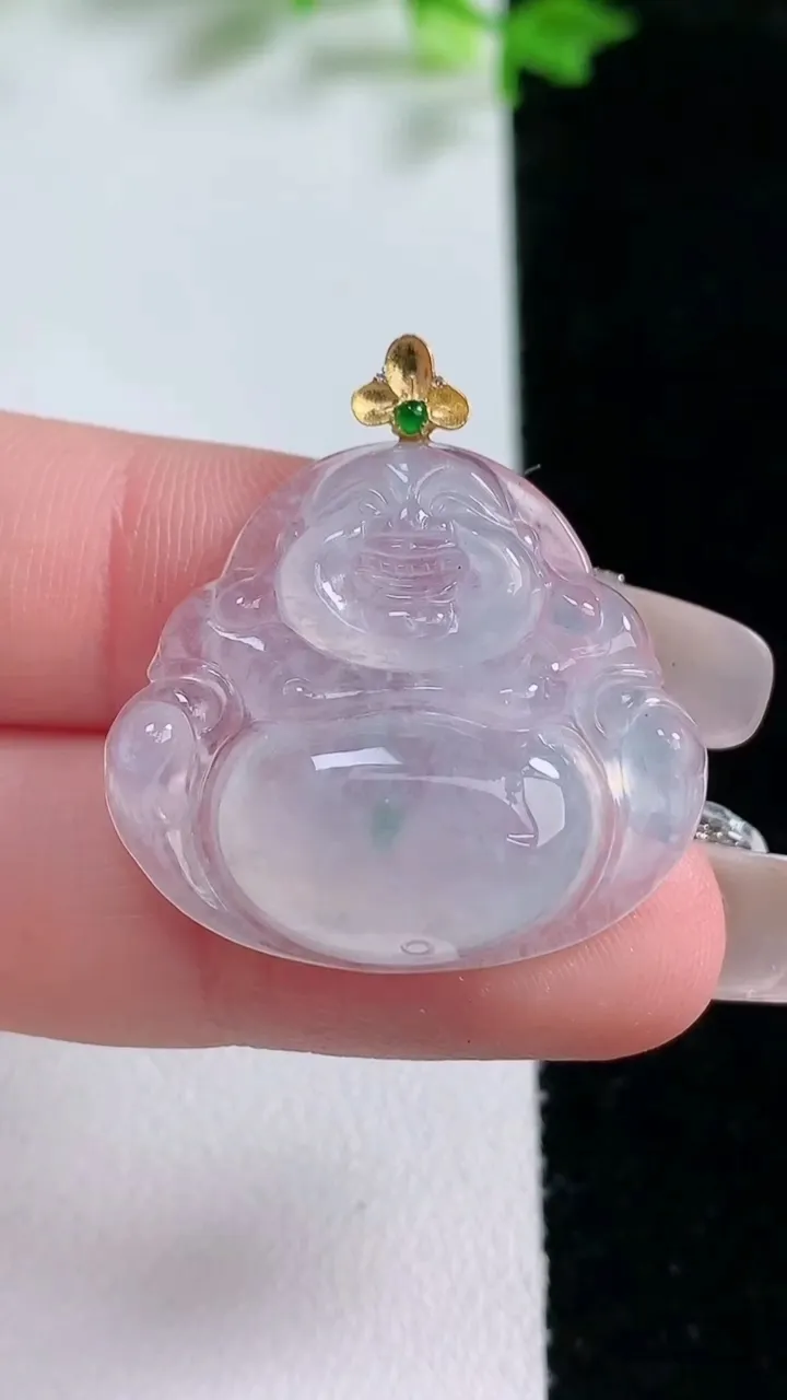天然A货翡翠种飘花佛公吊坠,尺寸24.7-28-5.5,重量:5.94g 1月20日