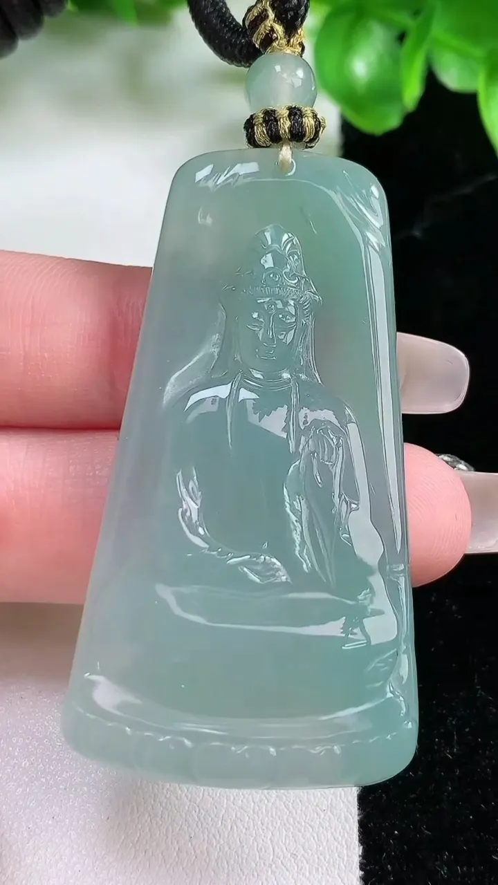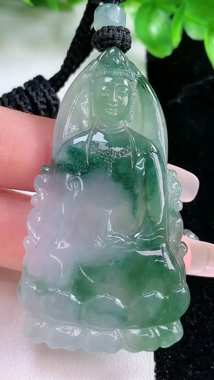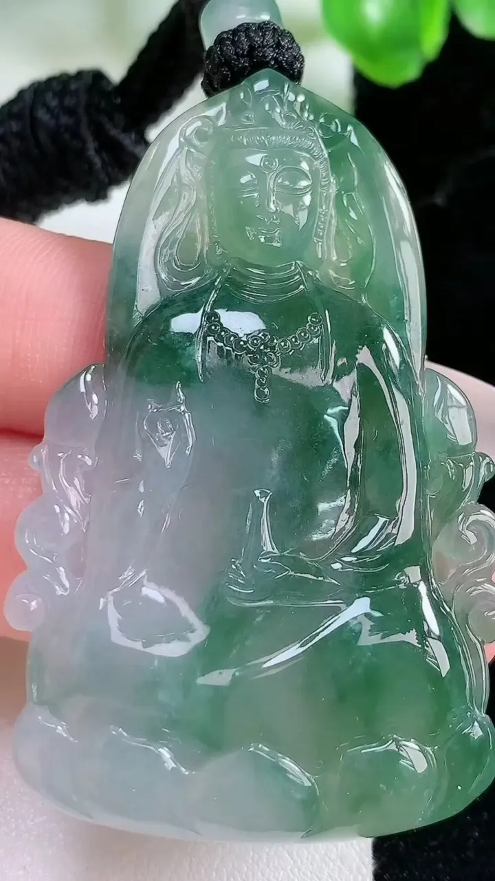 天然A货翡翠观音菩萨吊坠,尺寸54.6-28.3-5.5,重量:23.89g 1月21日