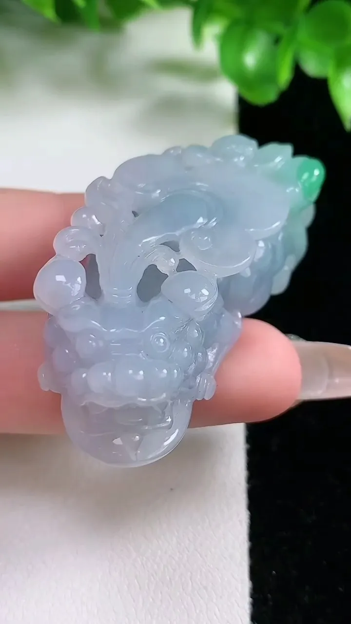 天然A货翡翠春带彩紫罗兰貔貅吊坠,尺寸49.6-23-14.9,重量:34.08g 1月21日