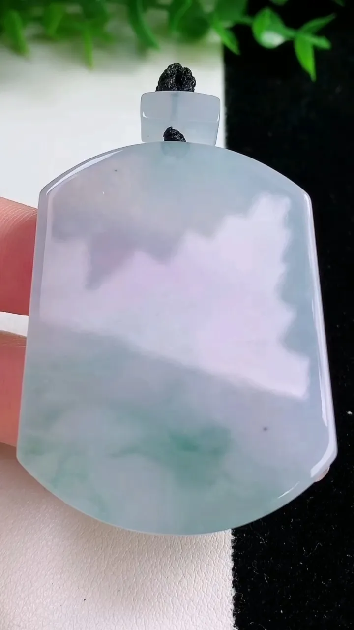 天然A货翡翠种飘花无事牌吊坠,尺寸53-40.7-5.5,重量:36.40g 1月24日