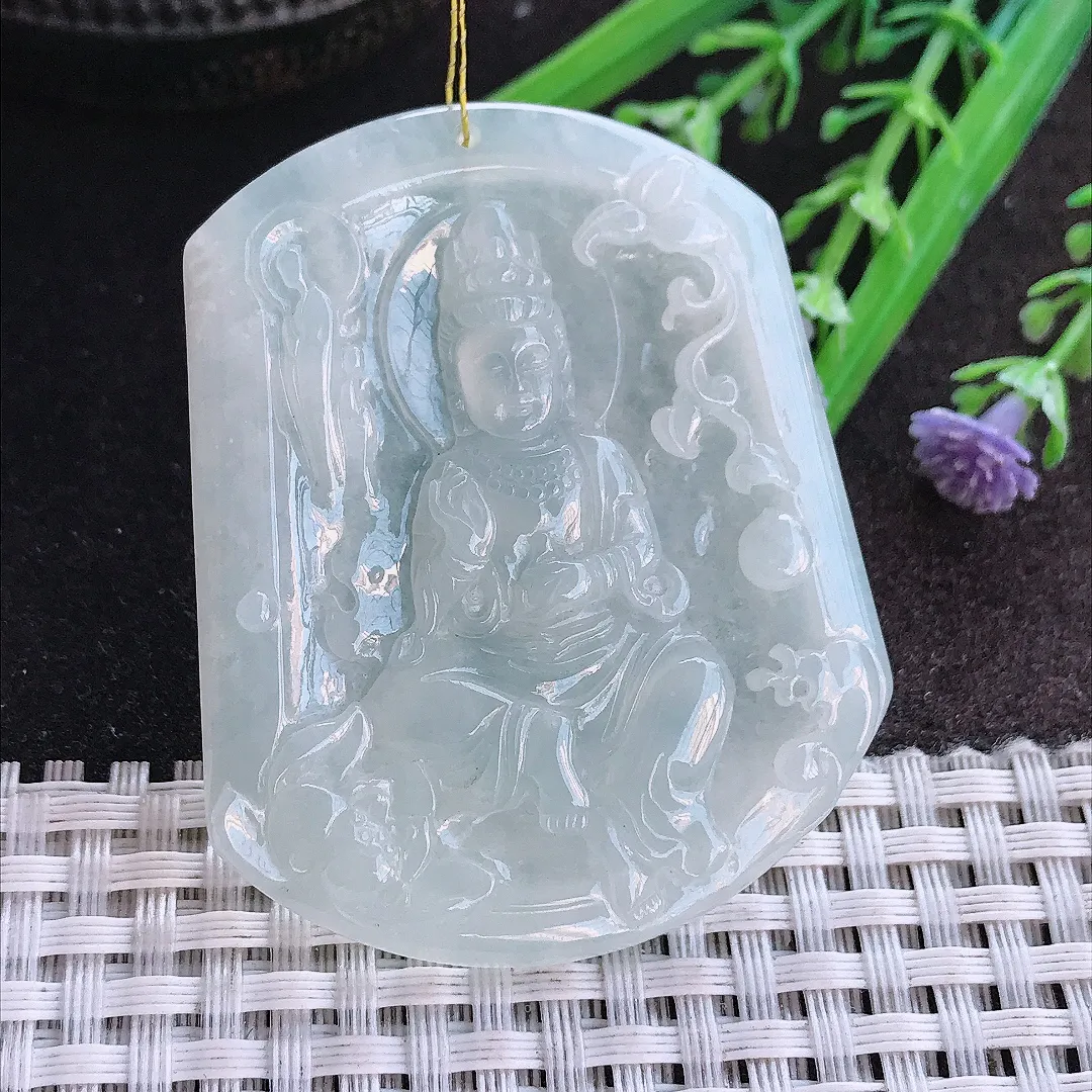 自然光实拍,18K金镶嵌冰种翡翠佛公吊坠,冰透饱满, 佛公亦保平安,寓意有福(佛公)相伴,品相佳,配