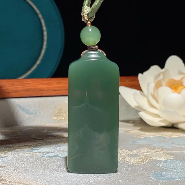 和田玉鸭蛋青俄罗斯碧玉平安无事牌挂件 尺寸47/20/15重33克。无裂无杂无结构 玉质细腻油润。手