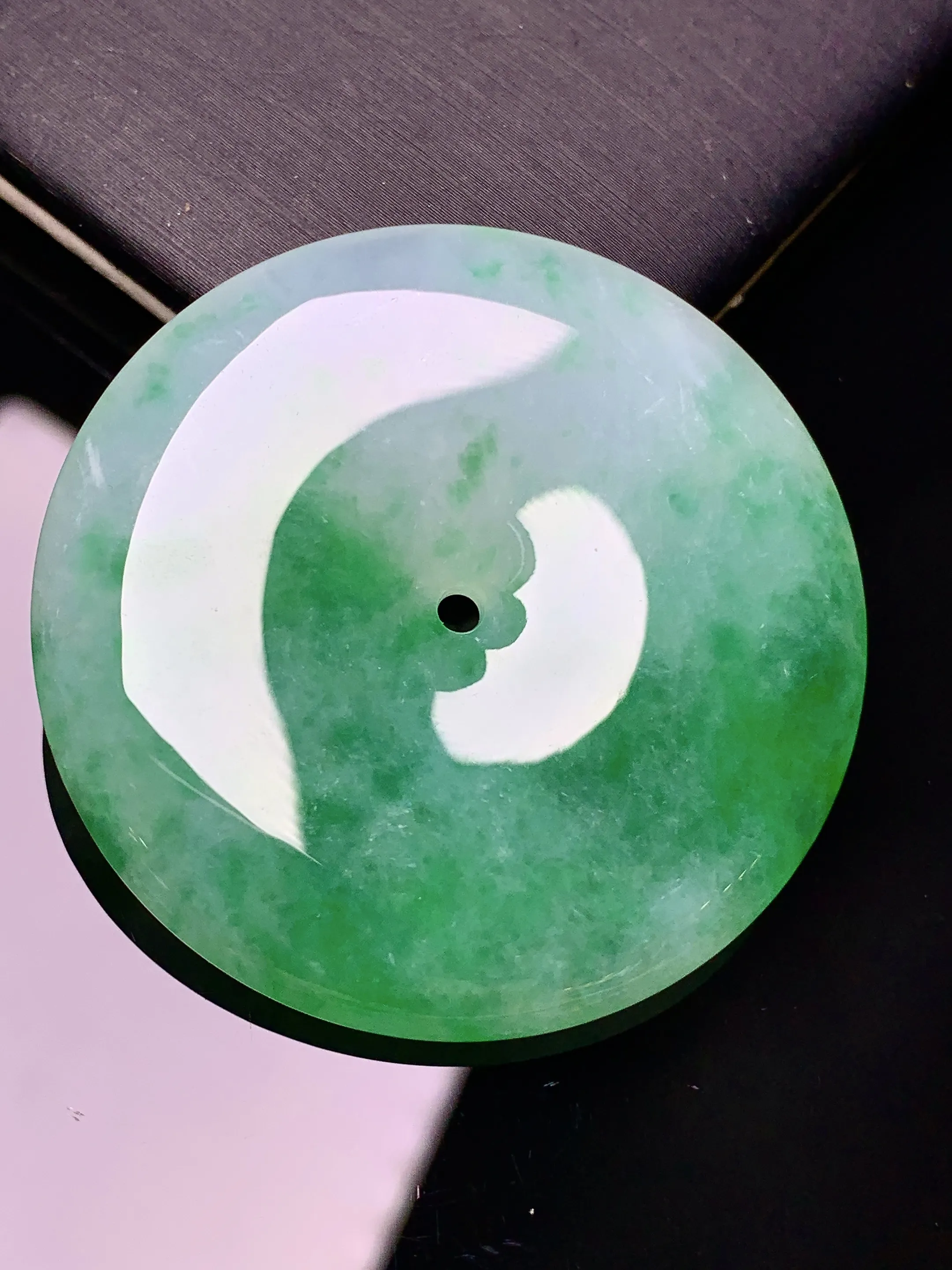 飘绿平安扣吊坠 玉质细腻 色泽艳丽清新 整体尺寸40.2*6.5