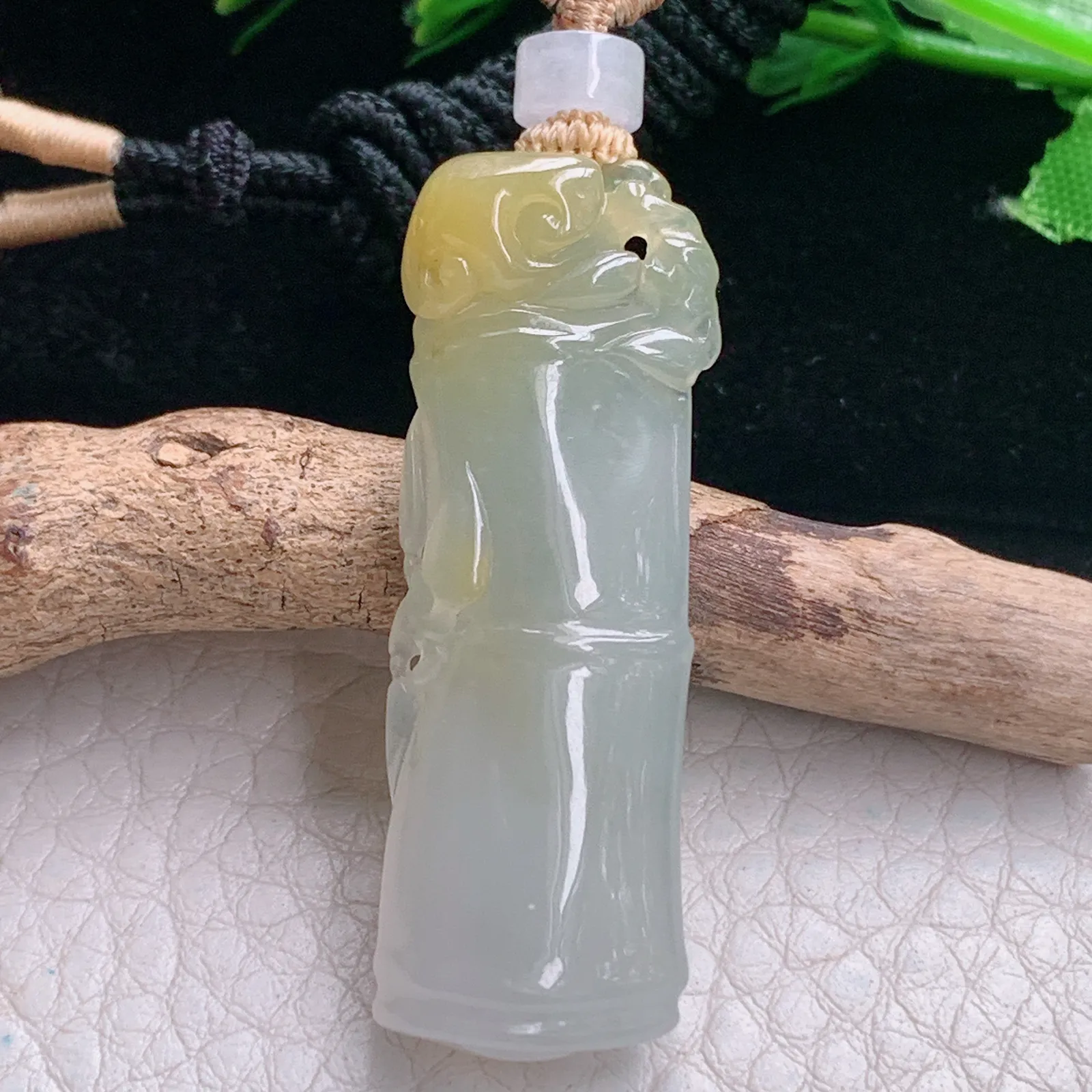 cys实拍43*14.6*6缅甸翡翠精雕冰双彩竹节 节节高玉吊坠 玉挂件