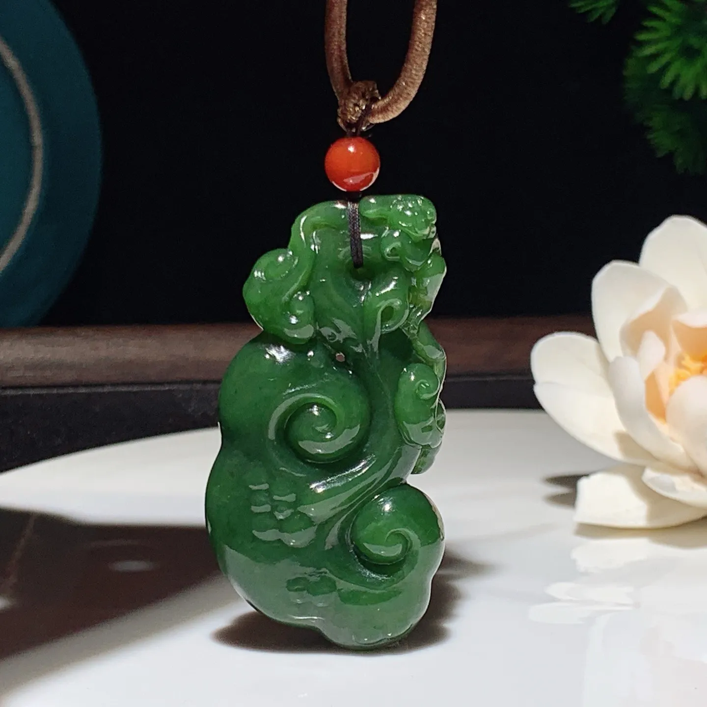 和田玉菠菜绿俄罗斯碧玉如意挂件 尺寸51/27/10重25.4克 玉质细腻油润 底色纯净 脂粉好,品