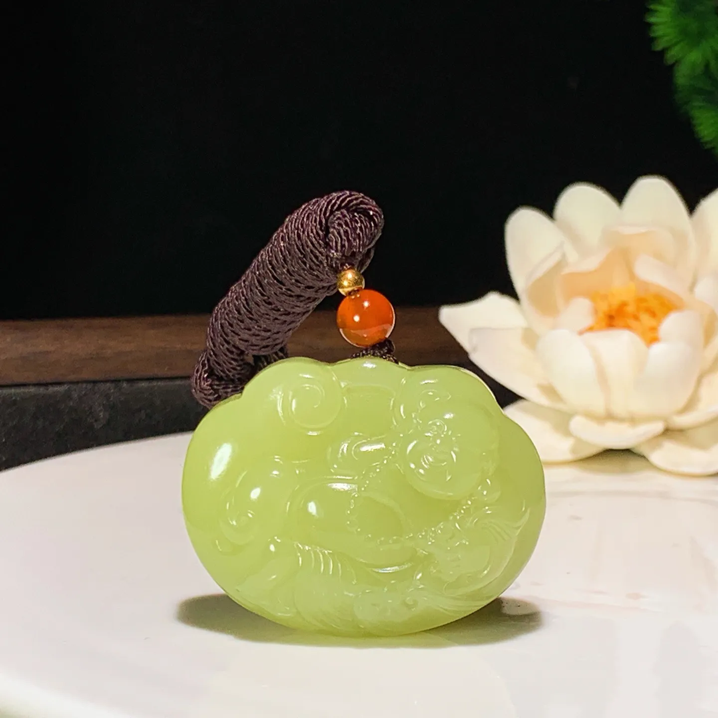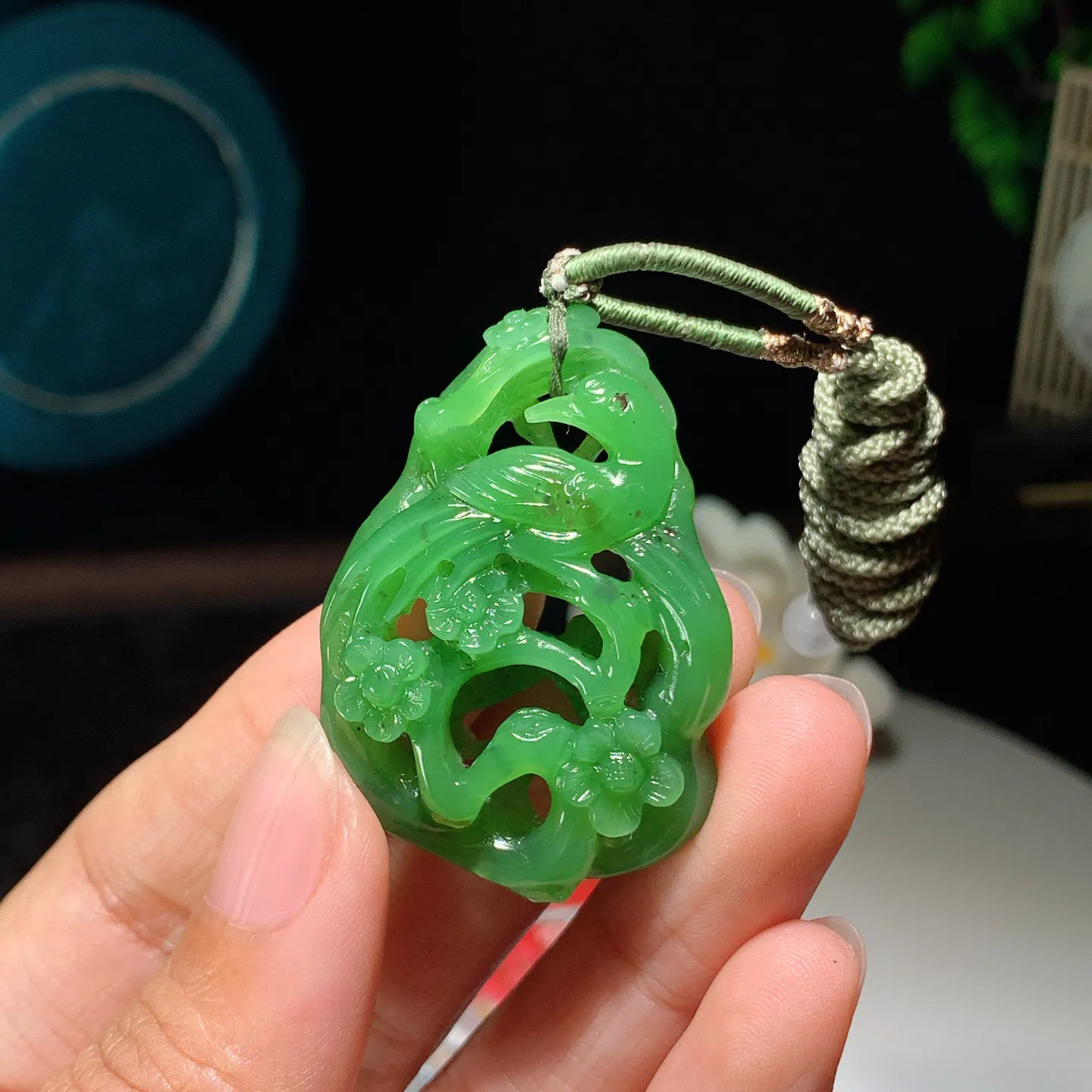 和田玉阳绿俄罗斯碧玉喜上眉梢挂件 尺寸44/30/10重16克 玉质细腻油润 底色纯净 脂粉好,品质