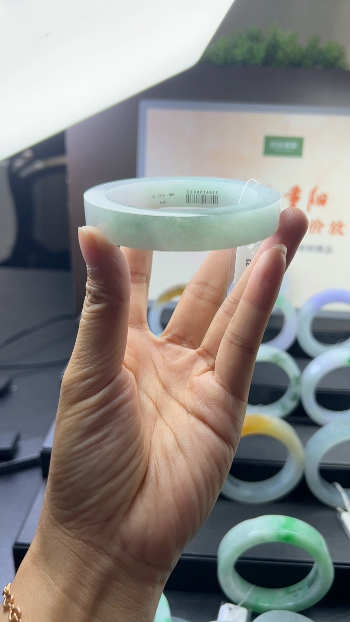 56.5圈有种有色天然翡翠A货飘绿贵妃手镯好种水水润手镯26.74g