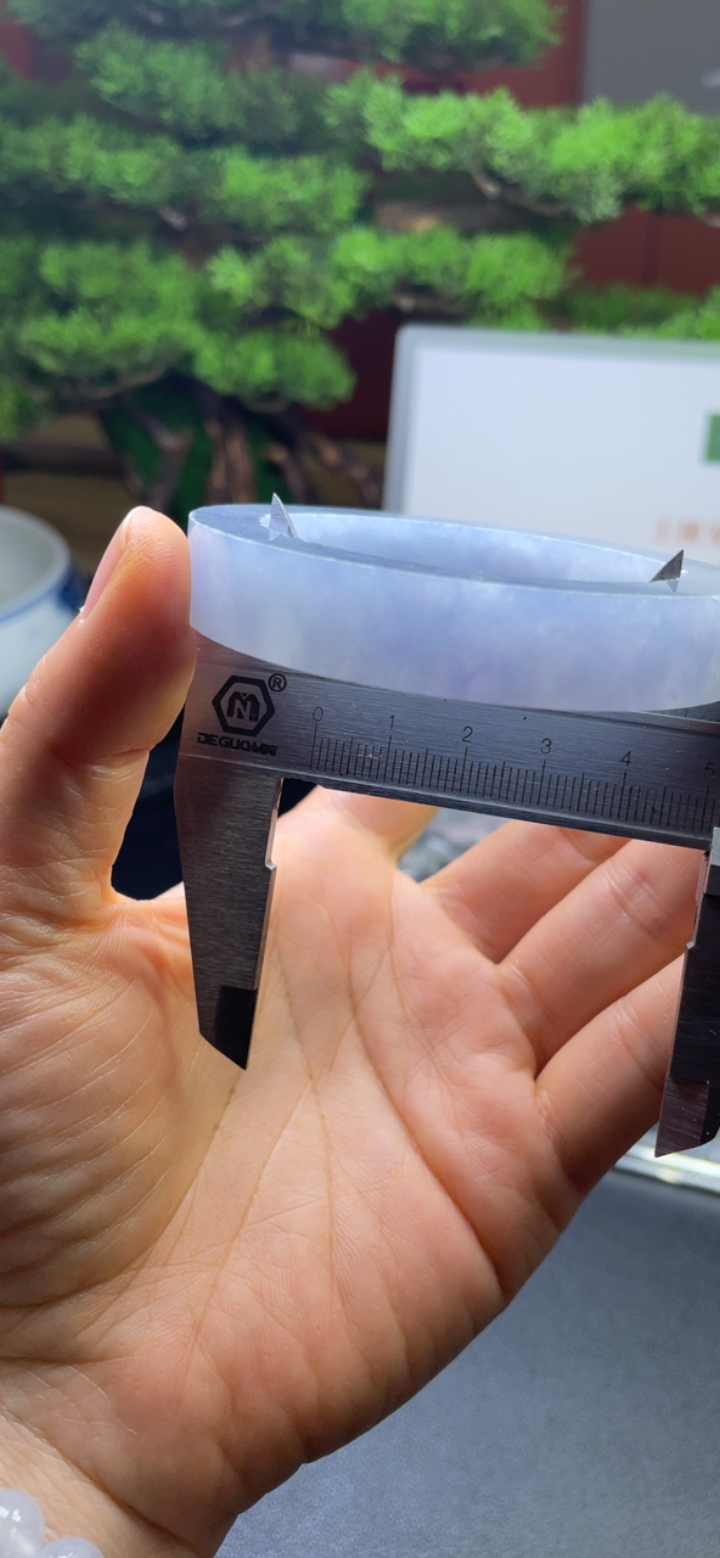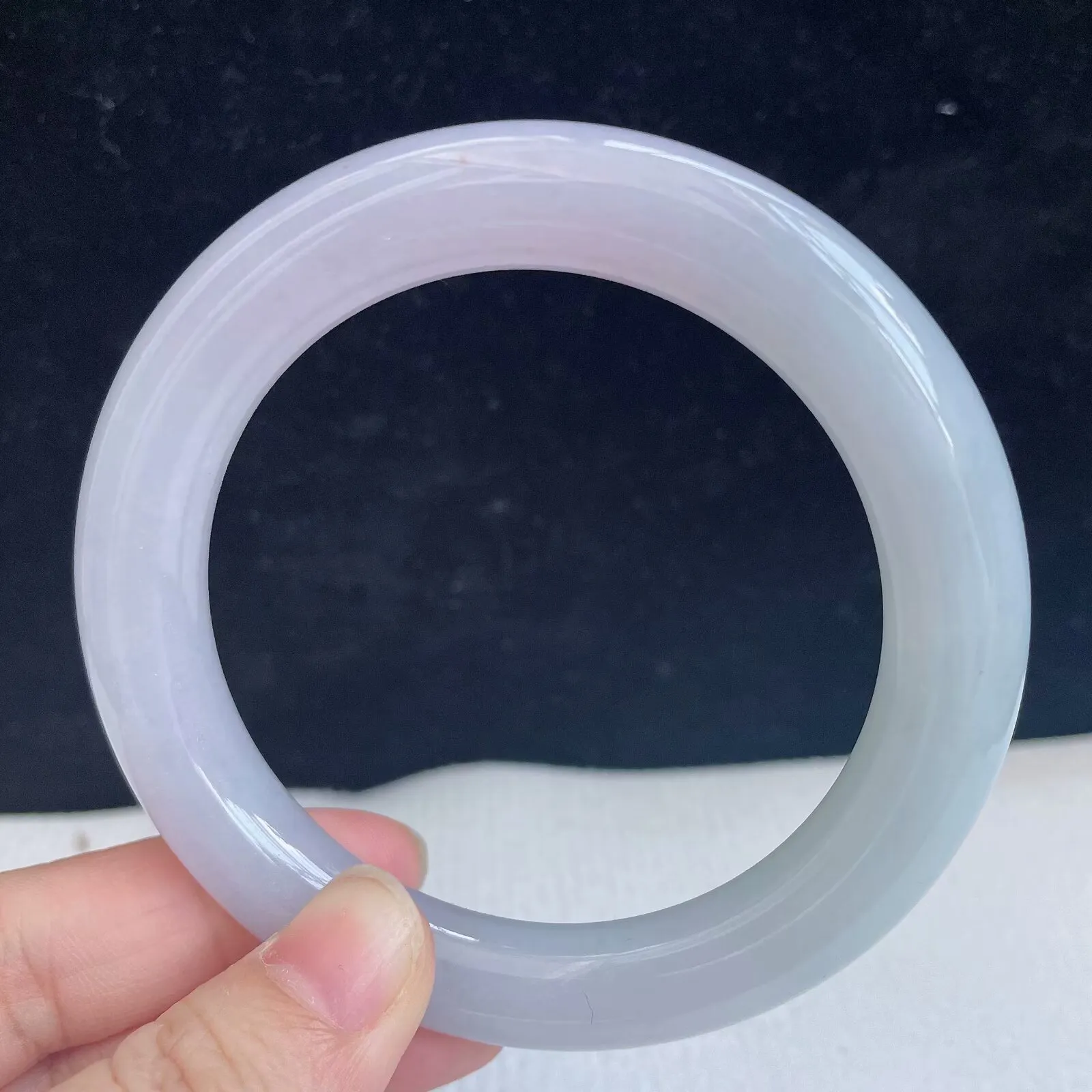 58.3圈有种有色天然翡翠A货淡紫玉手镯好种水春彩水润手镯41.82g