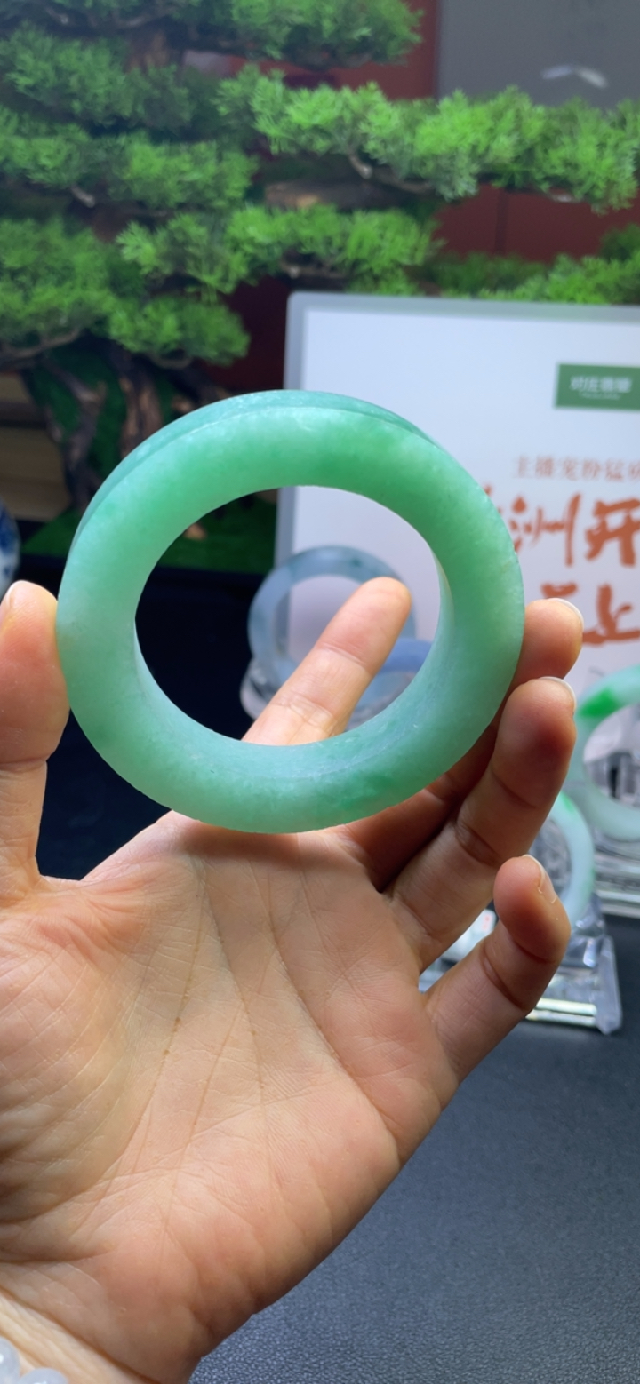 52.6mm自然光拍摄天然翡翠满绿好种水圆条手镯 45.72克