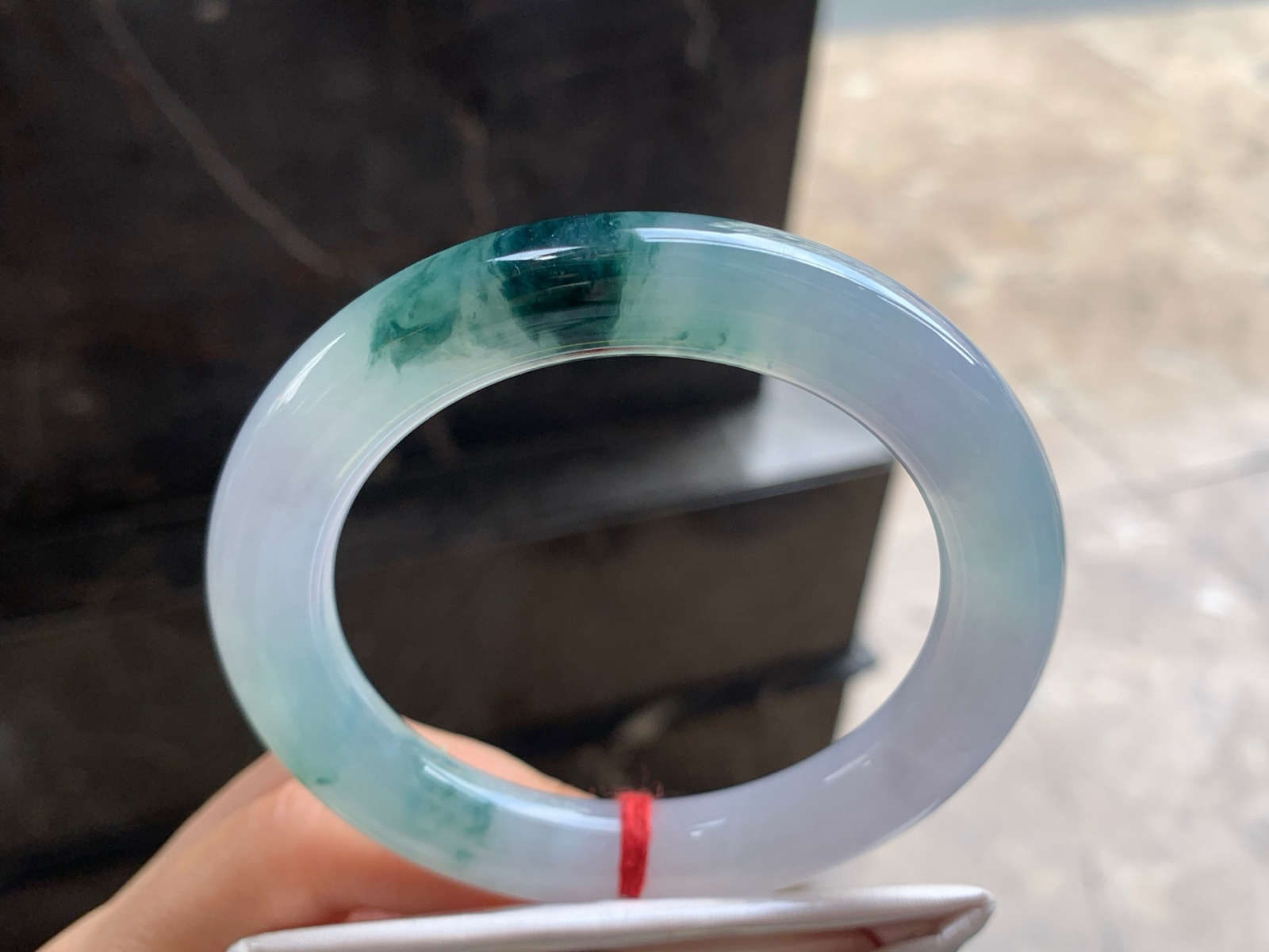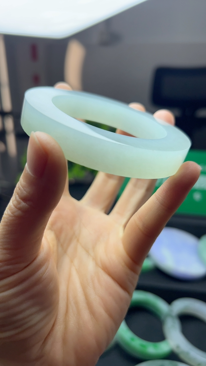 xc实拍59*16.8*8轮胎镯 天然缅甸翡翠a货手镯飘绿大气正圈玉镯子