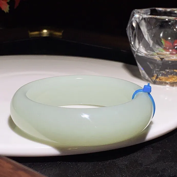 56圈口 新疆和田玉且末蓝手镯。宽版手镯。56圈口条宽18厚9重80.9克。玉质细腻油润。手推出油。