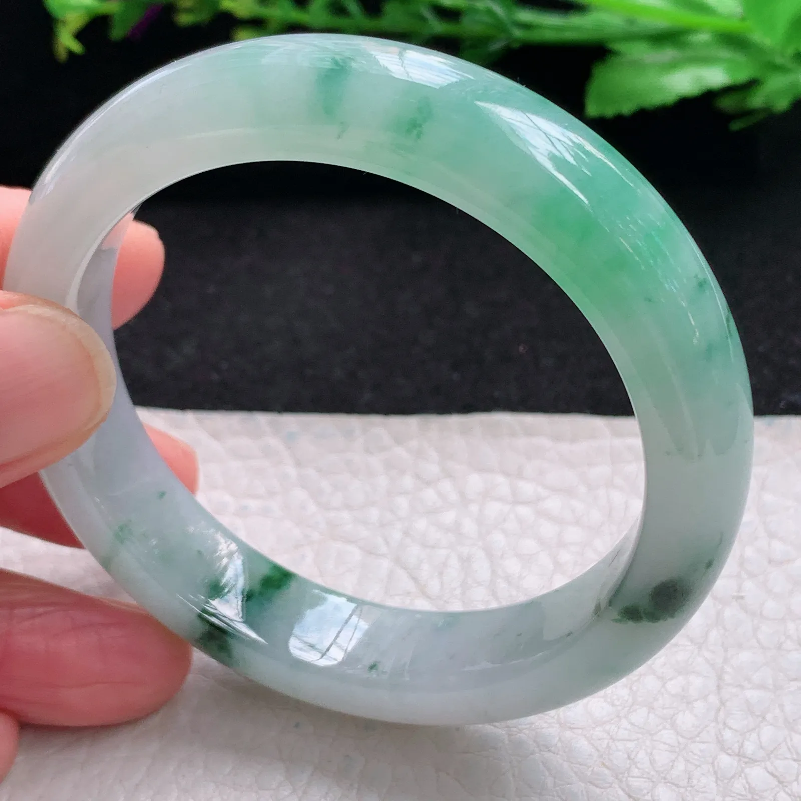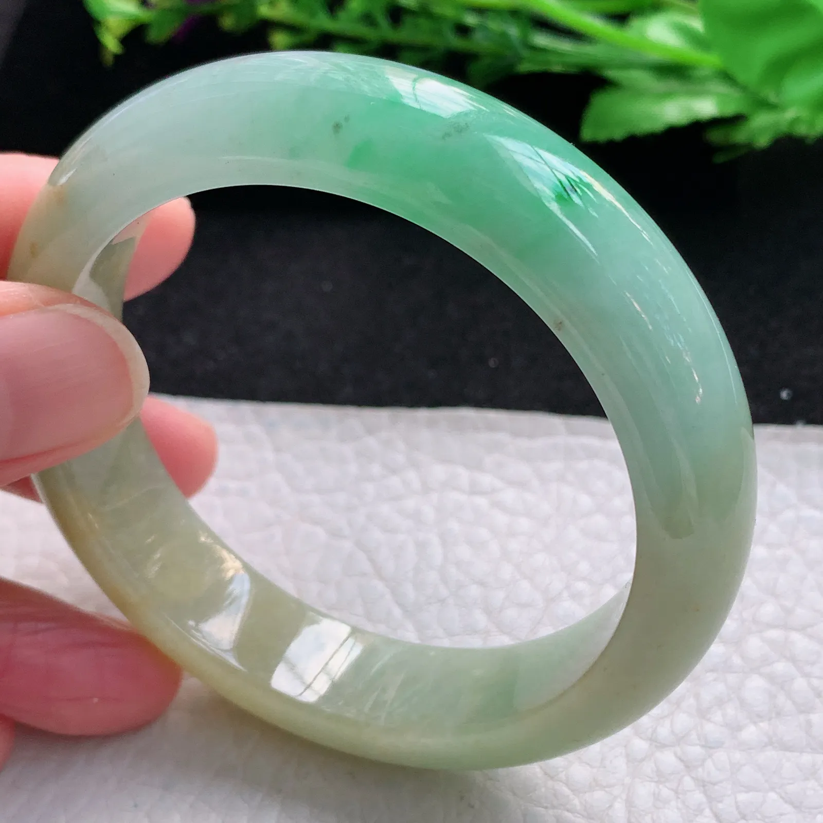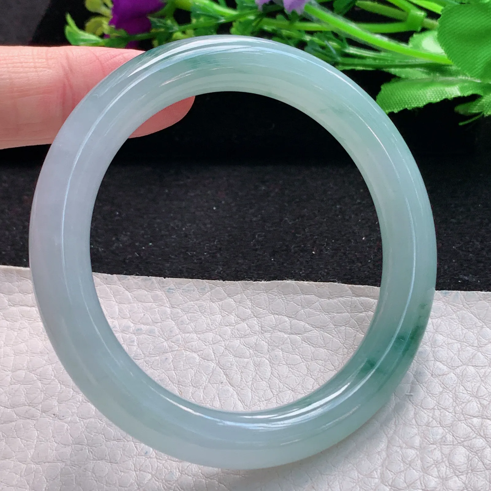 【翡翠名称】老种飘绿花53.3圈口圆条翡翠手镯 【翡翠尺寸】53.3*8.2*8.5mm适合52.5