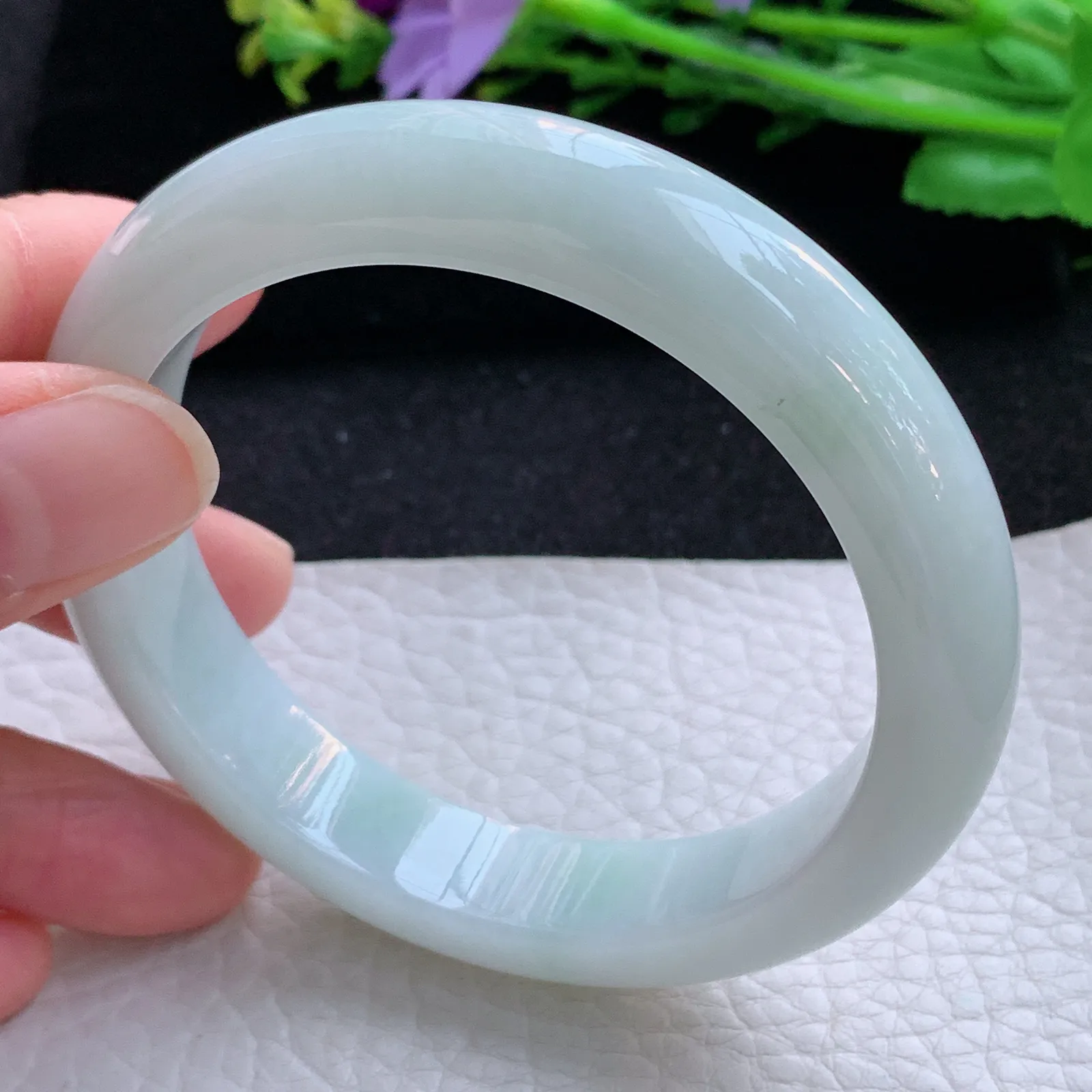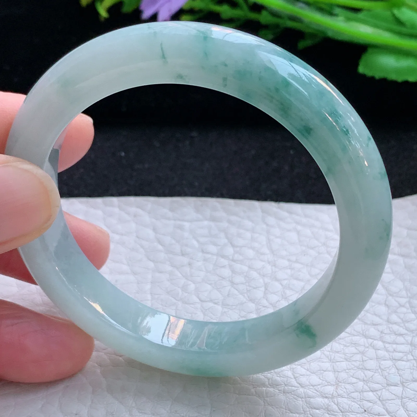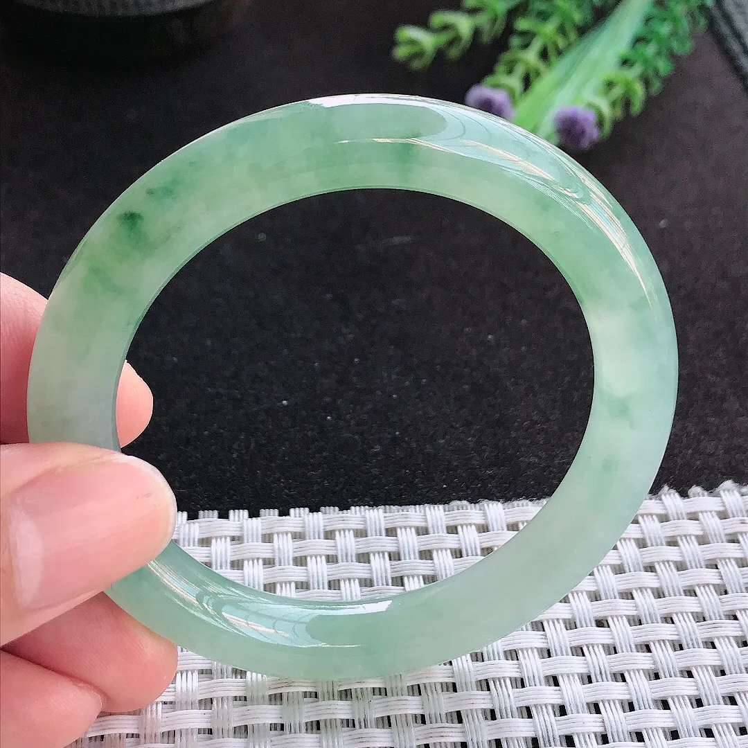 正圈冰玻绿淡淡紫 无瑕 尺寸:53.6/11.3/7.7 种色兼备