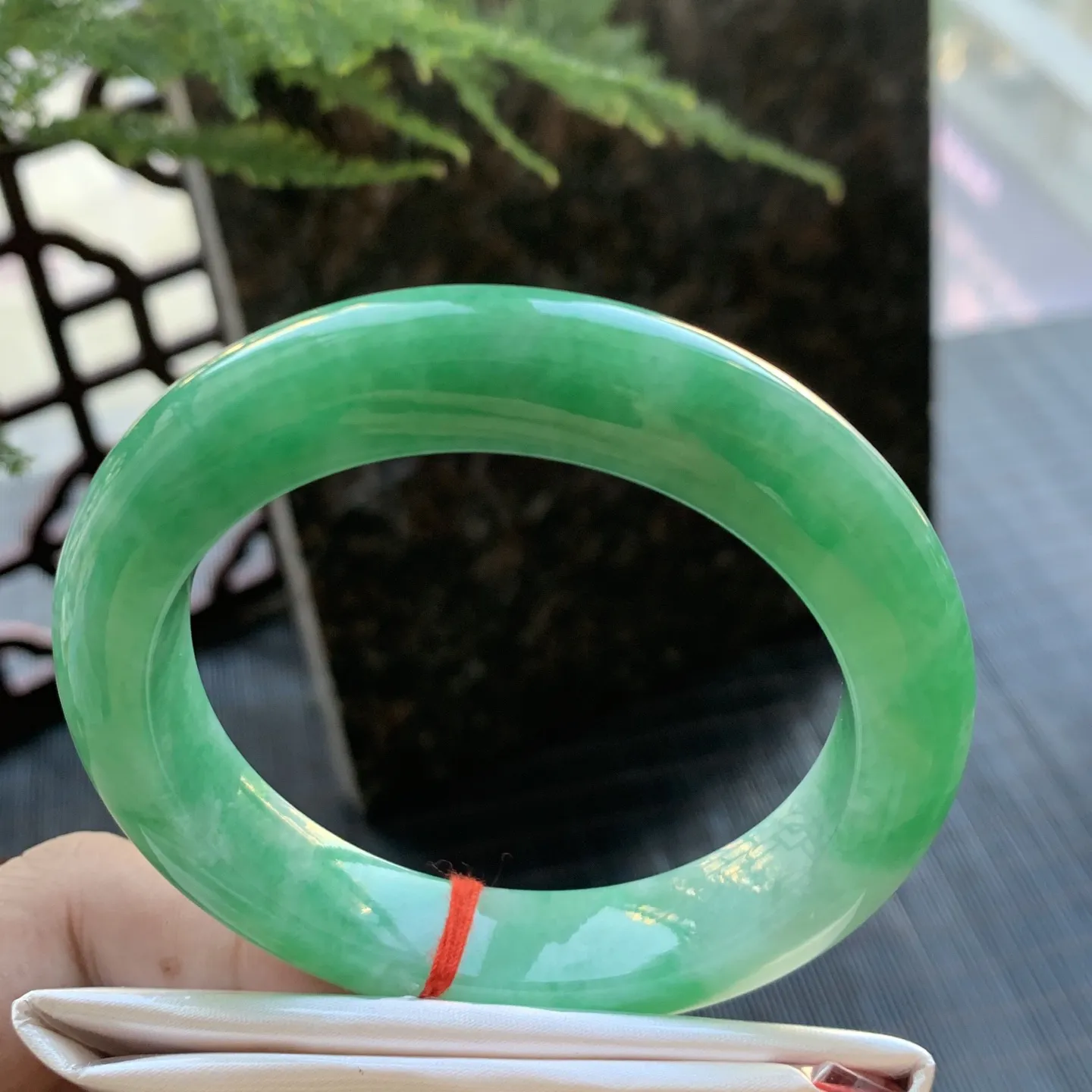 正圈满绿 无瑕 尺寸:54.6/12.1/9.9 满色