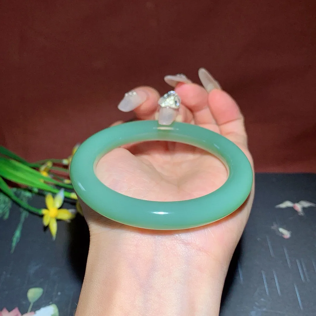 【翡翠名称】老种冰飘花55.3圈口圆条翡翠手镯 【翡翠尺寸】55.3*9.8*10mm适合55-57