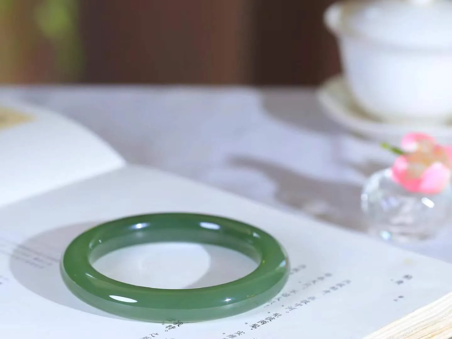 [温润如玉.手镯] 精品和田玉湖水绿手镯。玉质温润细腻 油性十足 手感舒适,高华雅逸,线条流畅,简
