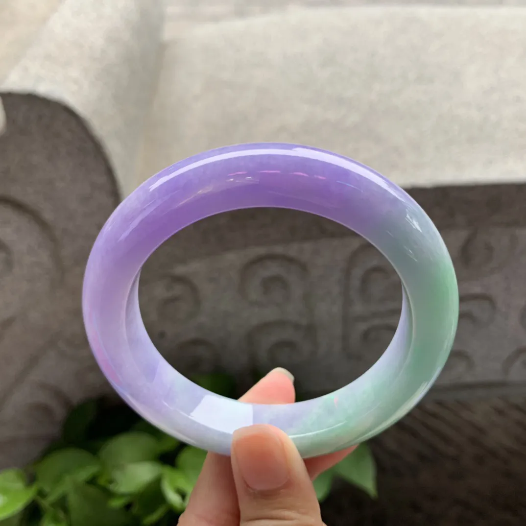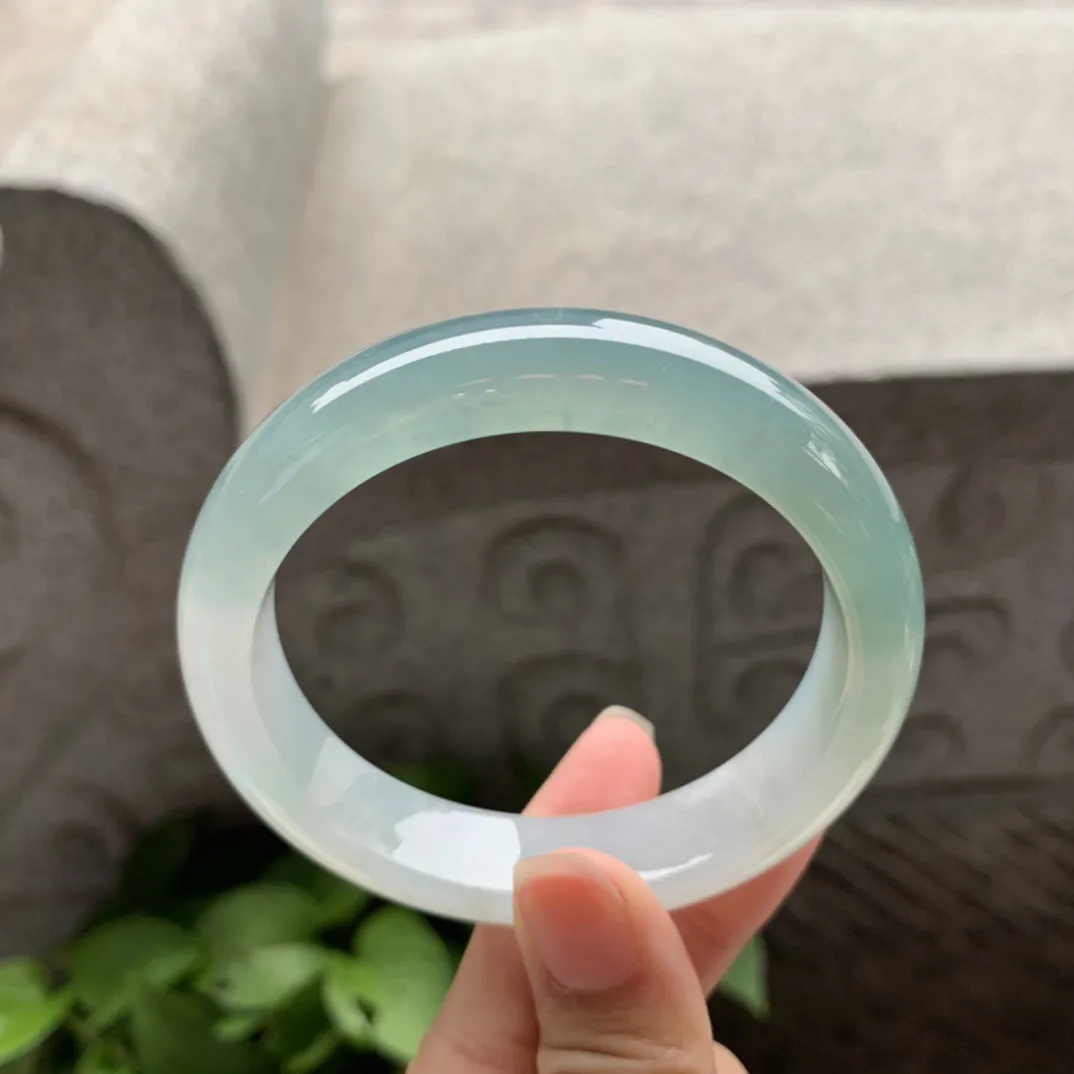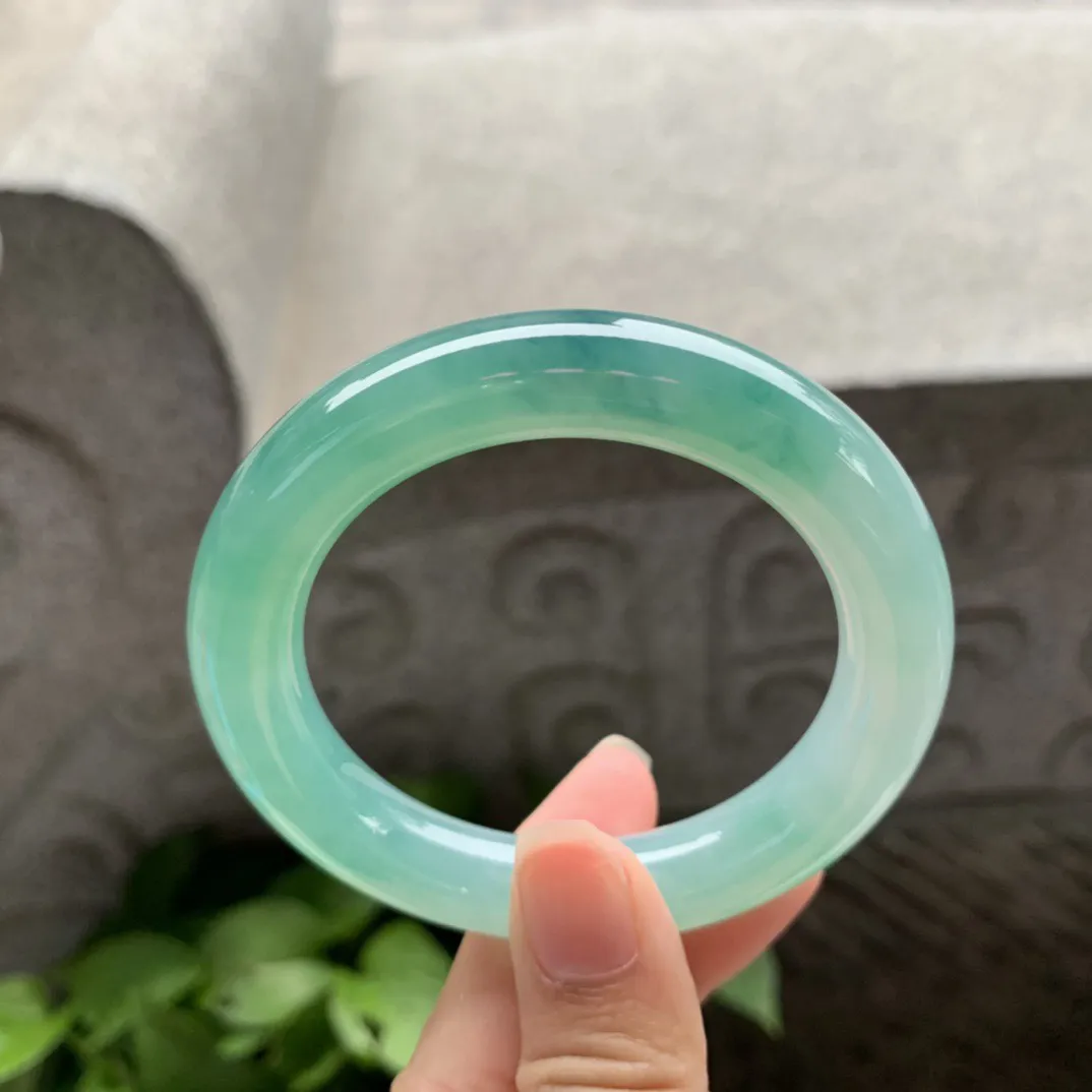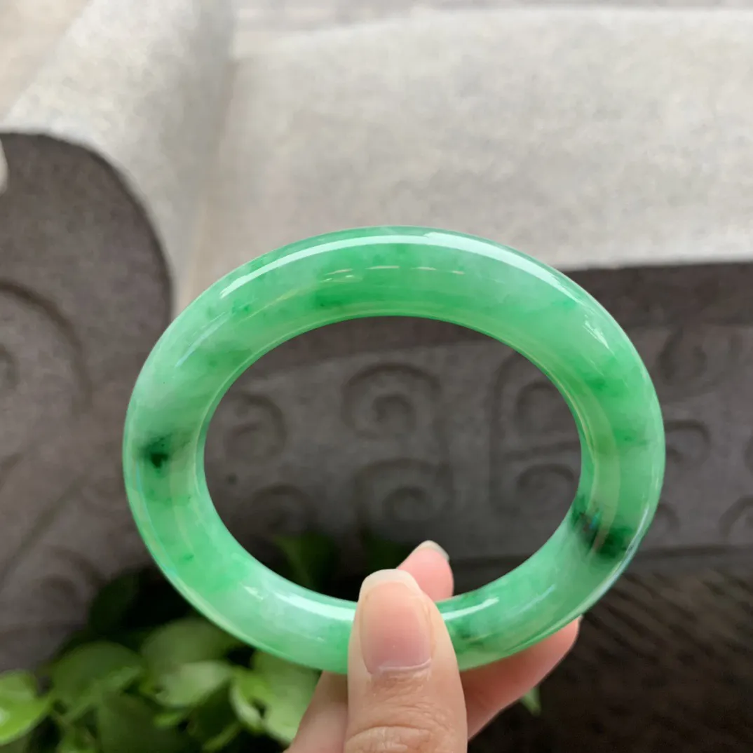 62大圈有种有色天然翡翠A货玉手镯好种水水润手镯57.28g