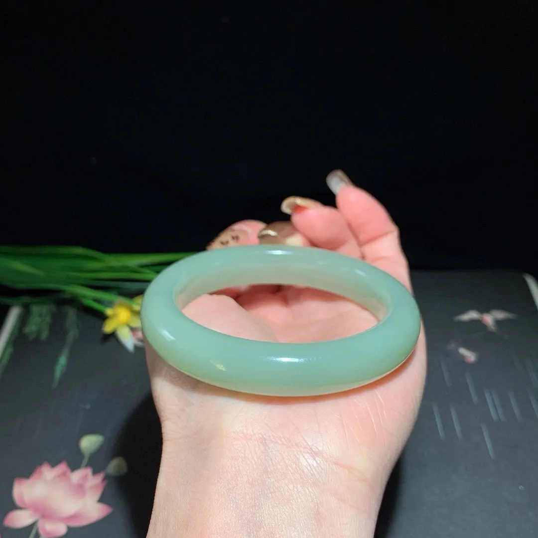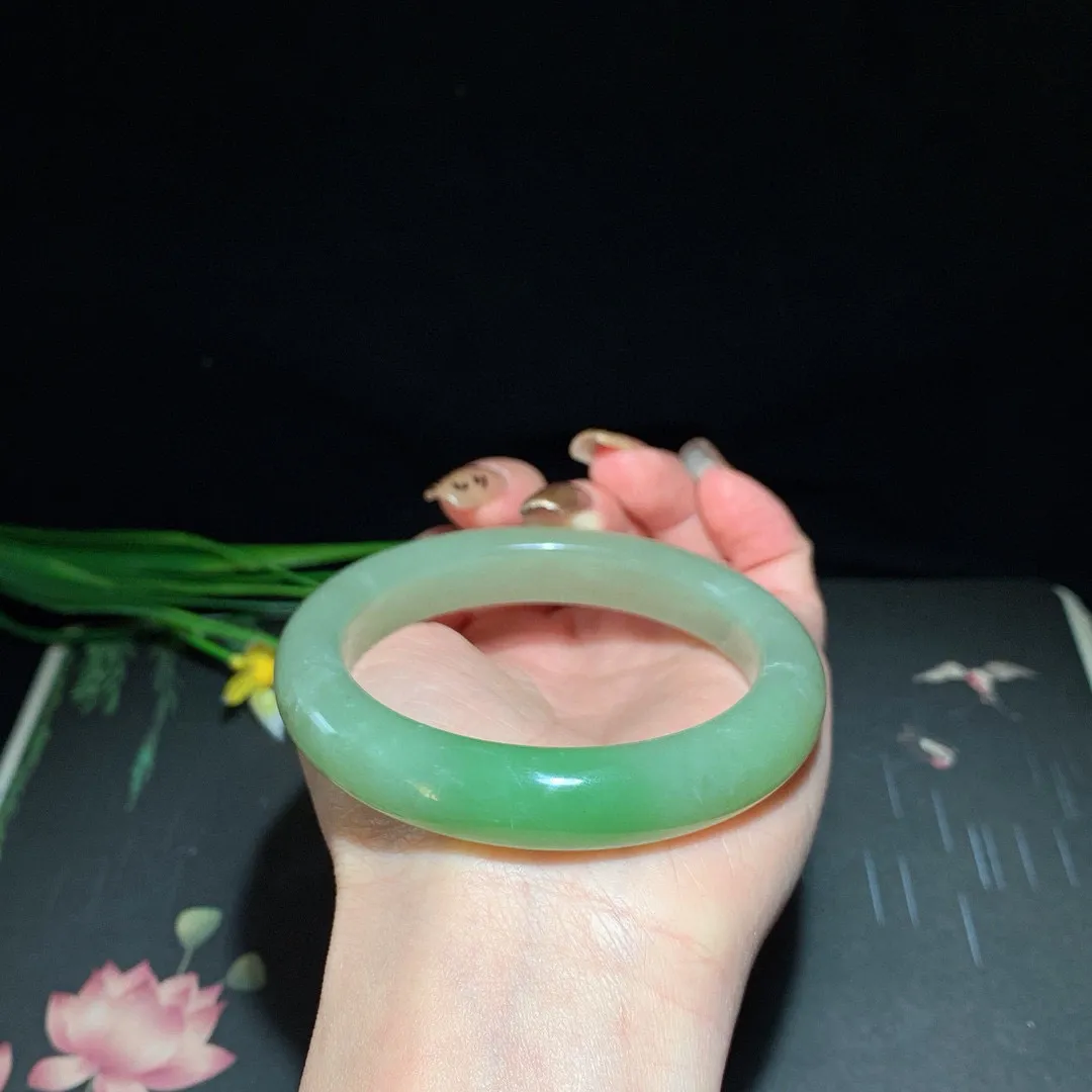 55-12.9-8.6 阳绿色手镯^_^玉质温润 颜色好看 底妆干净