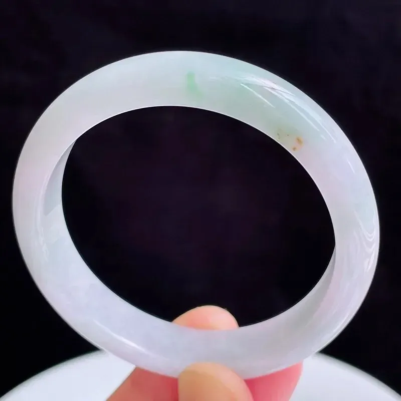 63大圈有种有色天然翡翠A货淡紫玉手镯好种水春彩水润手镯56.67g