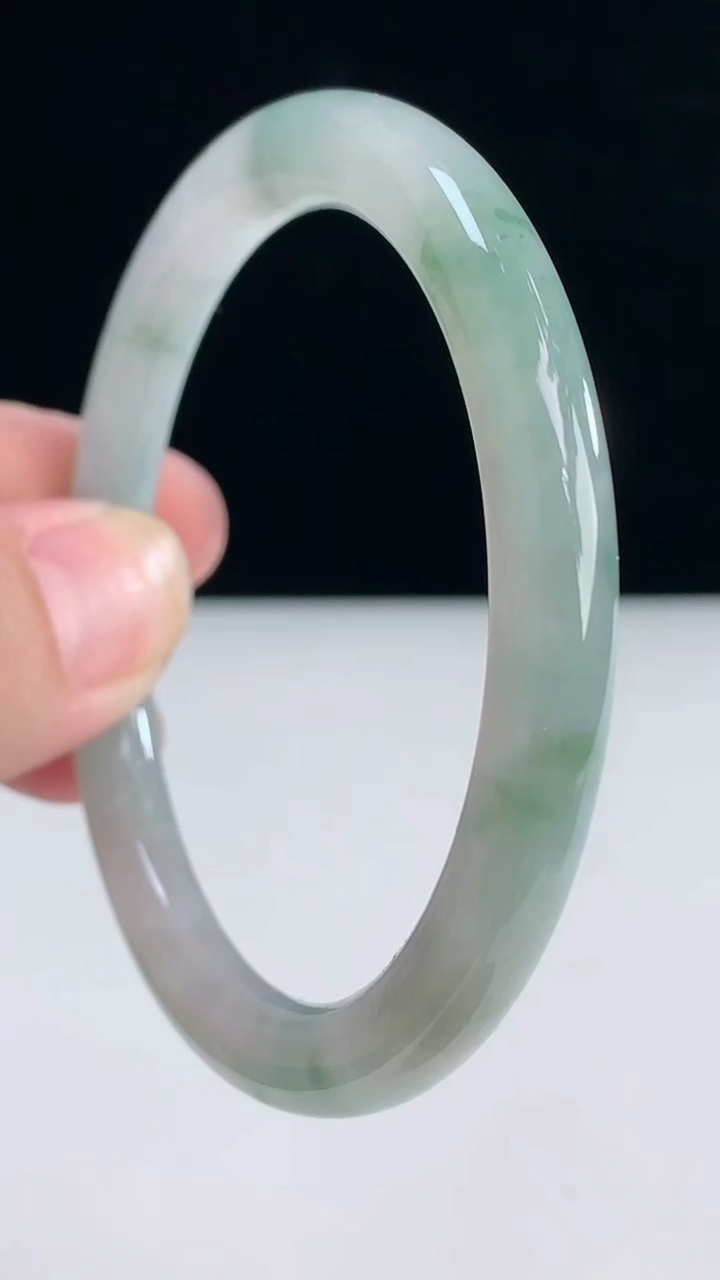 尺寸:57/12.2/8.4,绿底正圈,上手更衬出玉石的清雅光泽,尽显古典雅致之美。无纹裂