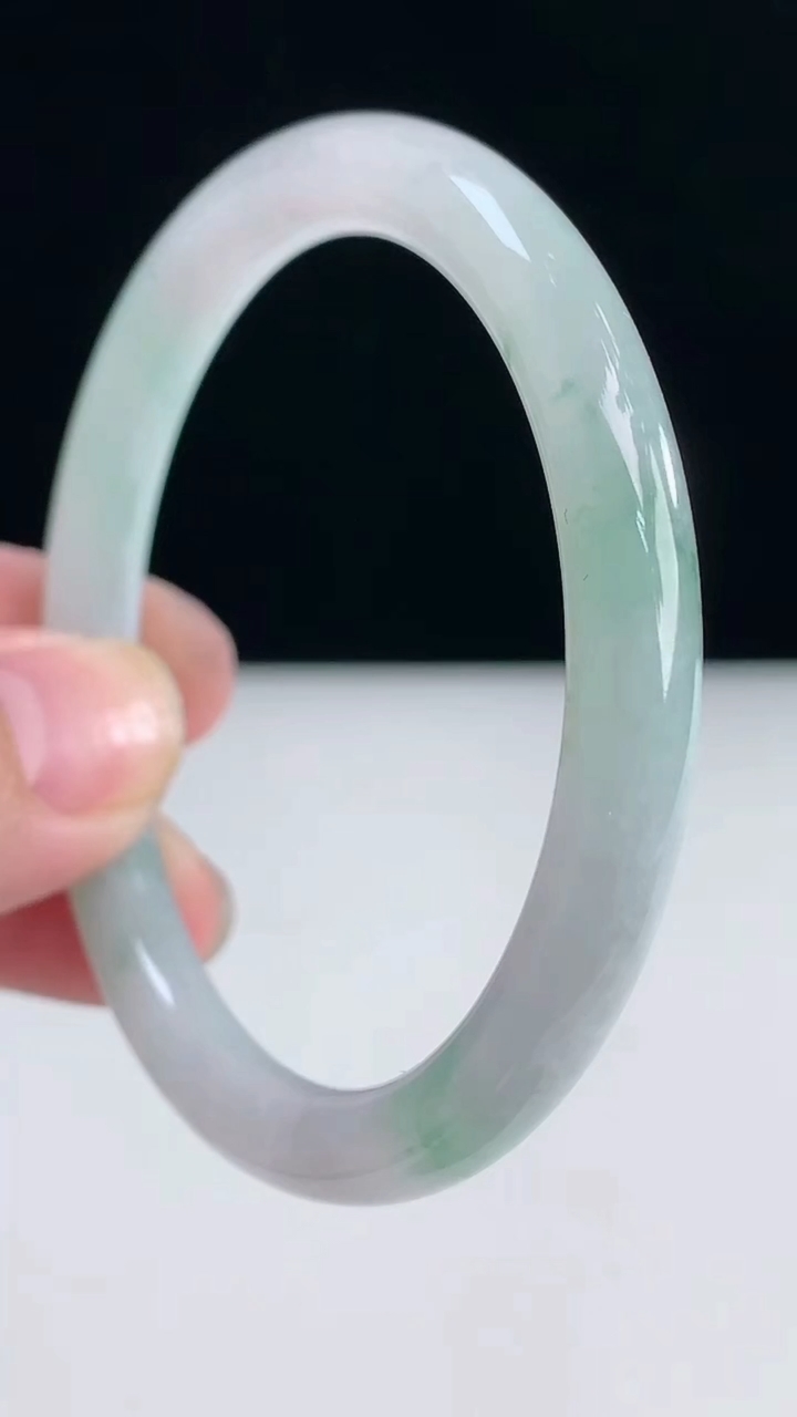 尺寸:56.6/12.3/7.6,绿底正圈,水润,种老,上手显气质,不失优雅,晶体。