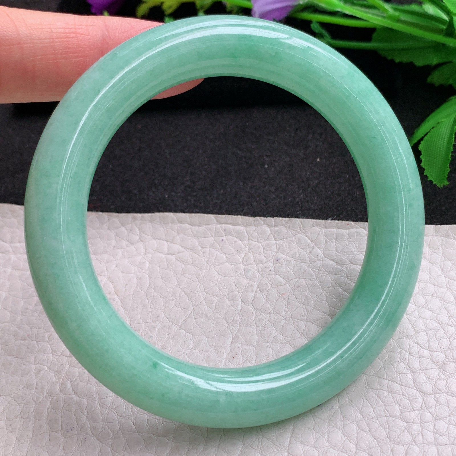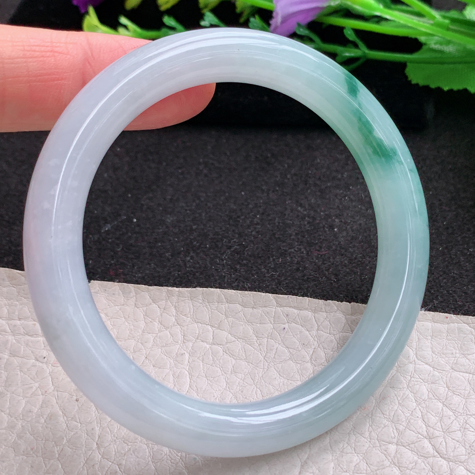 xo实拍53.5*9美人镯 天然缅甸翡翠A货玉手镯冰胶飘花圆条玉手环