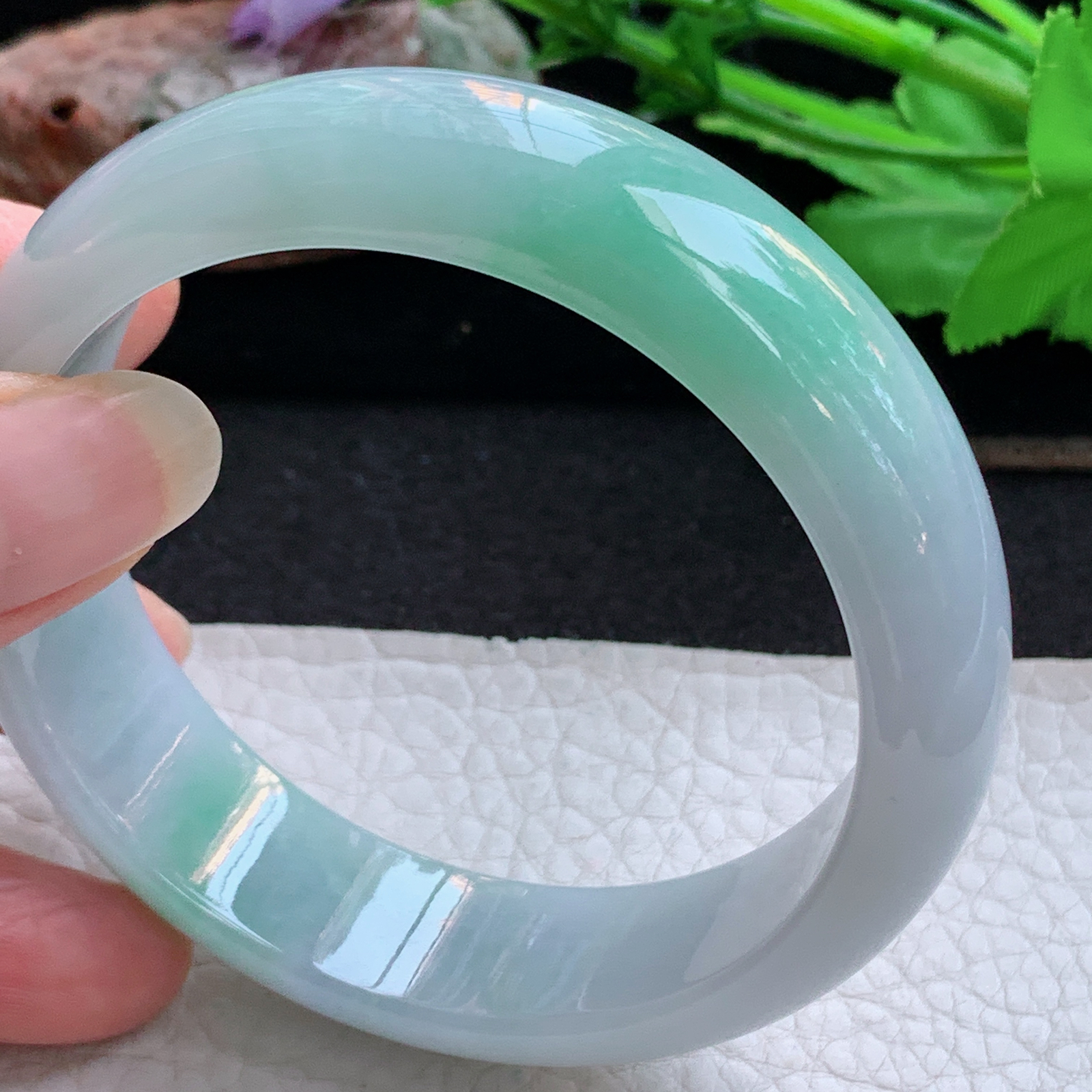 55/12/8.5,果绿底正圈,颜色分布均匀,清爽淡雅,料子细腻