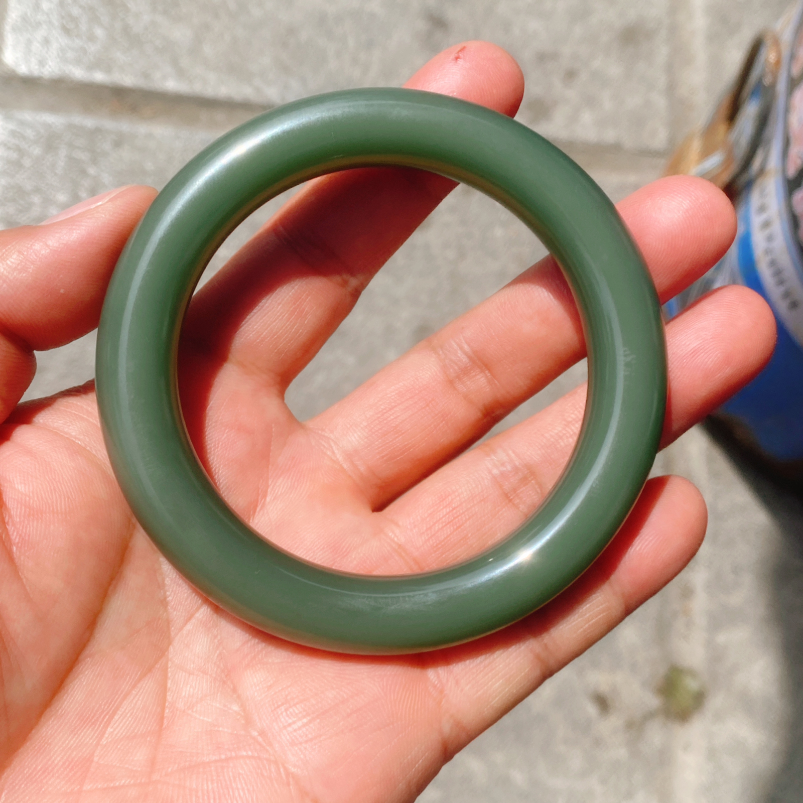 臻品圈口61/11和田玉俄罗斯碧玉冰底鸭蛋青圆条 玉质细腻油润。手推出油。品相大气
