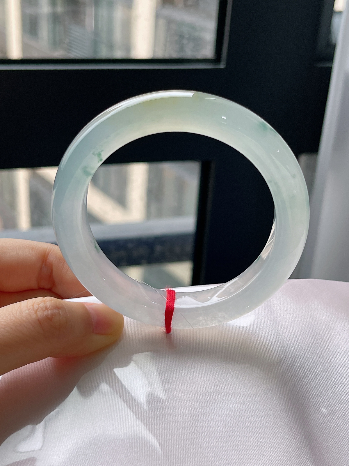 正圈56.2圈口,翡翠冰种白色手镯