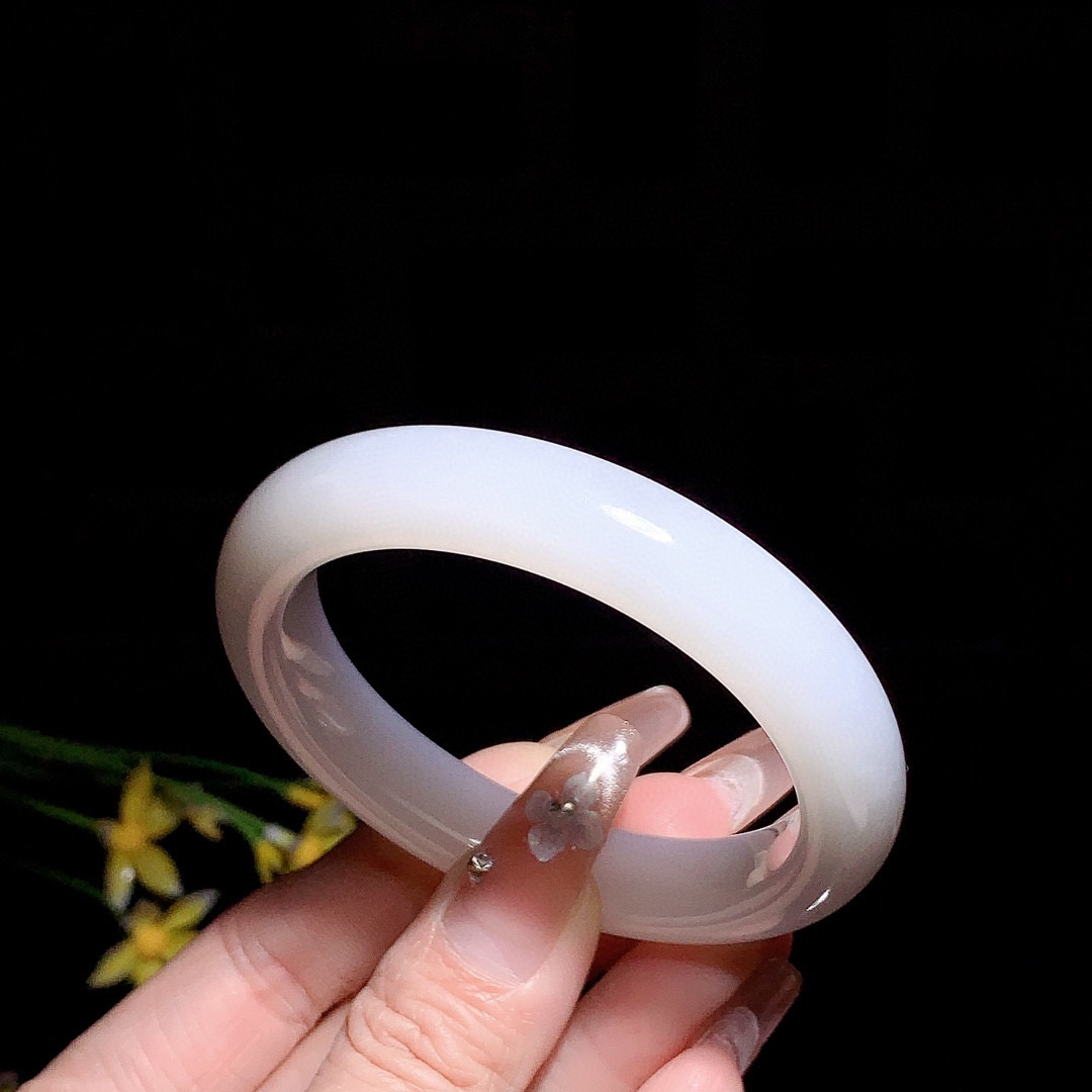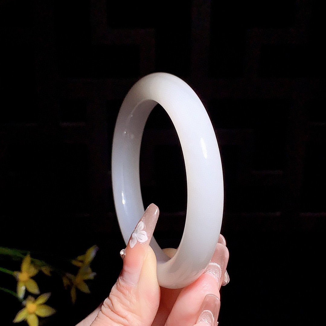 和田玉58圈口羊脂白手镯!玉质细腻油润 底色纯净 无裂无杂 脂粉好,品质高。